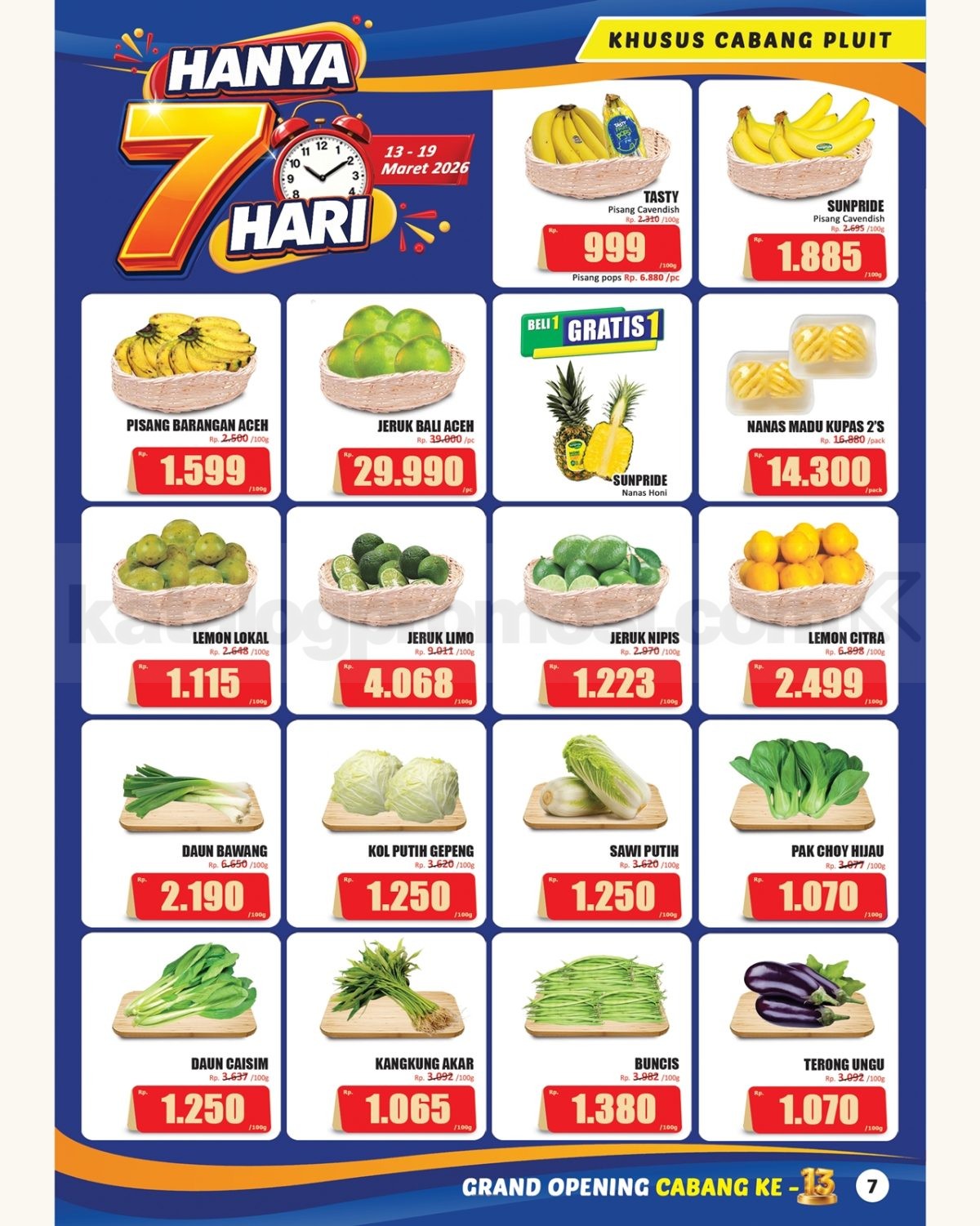 Promo HARI HARI Swalayan Opening Pluit 13-19 Maret 2026 berjalan pada periode 13 – 19 Maret 2026 dan seluruh promo berlaku khusus di cabang Pluit.