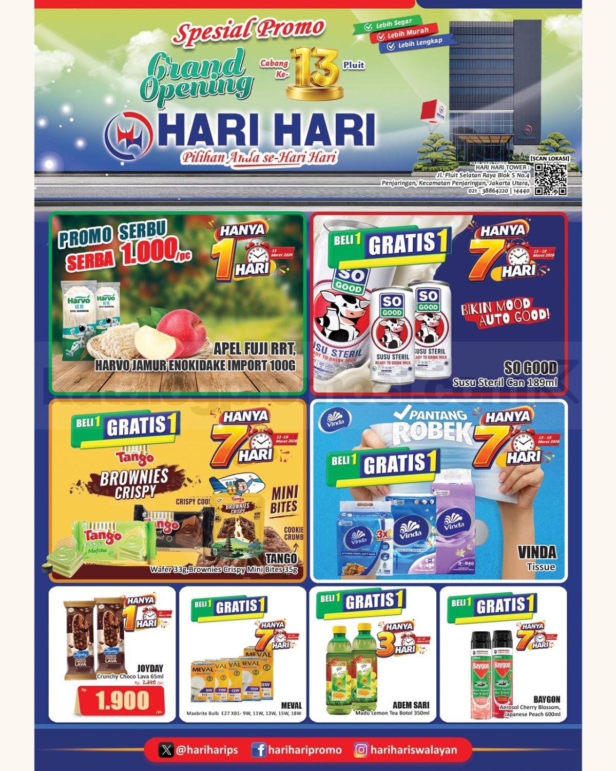 👉 Cek gambar Promo HARI HARI Swalayan Opening Pluit 13-19 Maret 2026 di bawah ini untuk lihat detailnya.