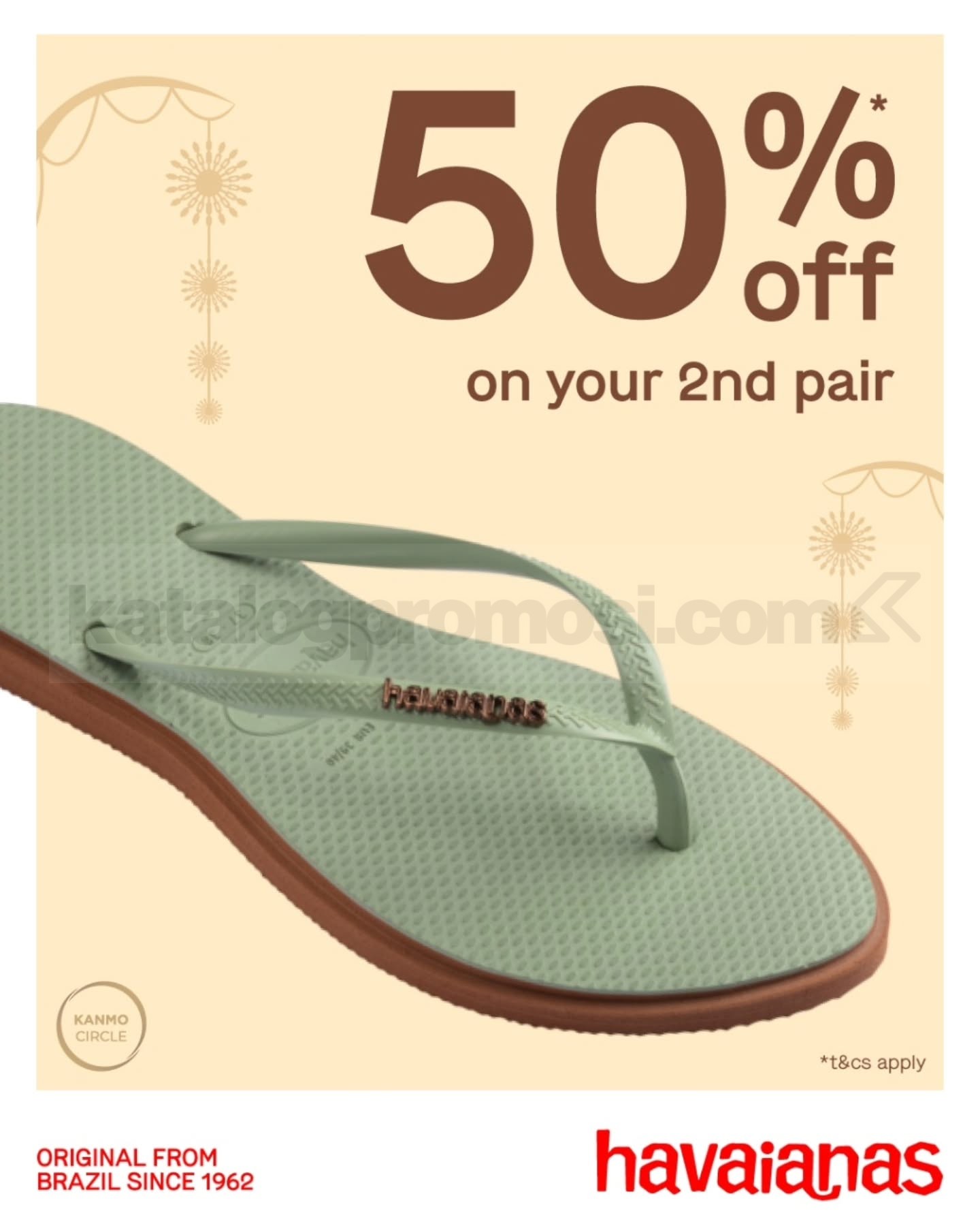 Promo berupa potongan harga 50% untuk pembelian produk kedua sesuai ketentuan Havaianas.
