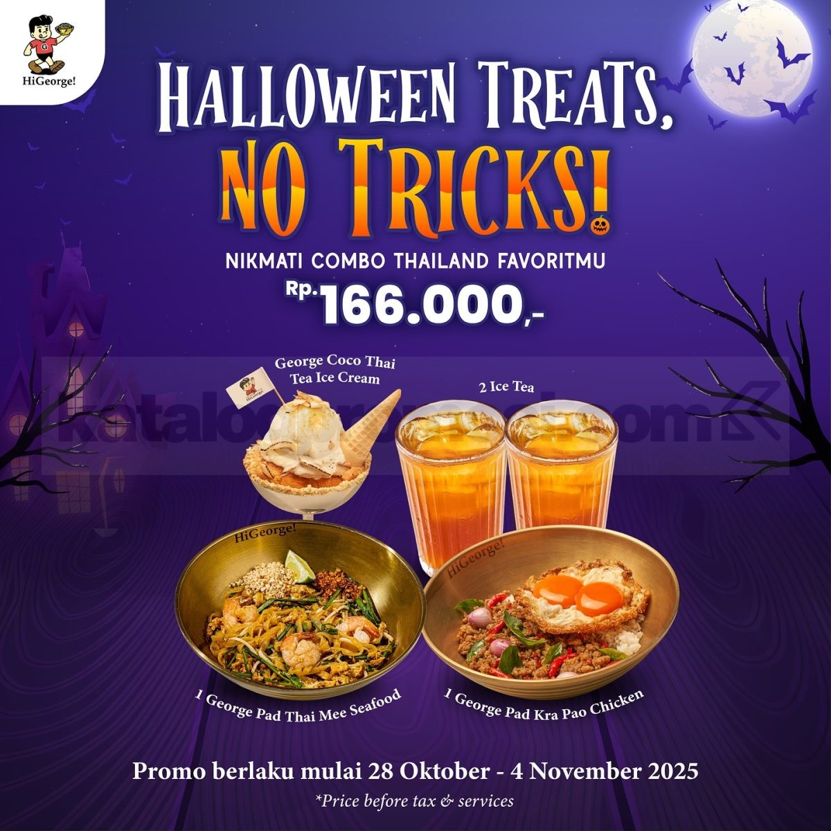 Promo HIGEORGE Halloween Treats Combo Rp. 166.000 dengan menu lengkap khas Thailand, berlaku 28 Oktober β 4 November 2025 di seluruh outlet HiGeorge.