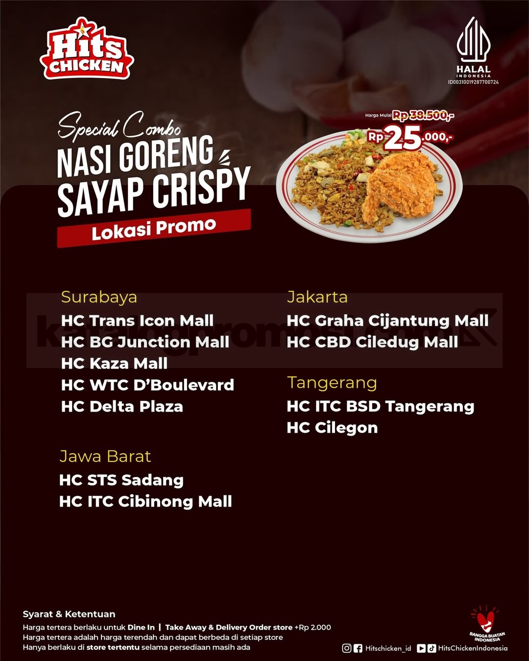 Berlaku di outlet Hits Chicken yang menyediakan menu Hits Combo 4 dan cabang yang memiliki HC Cafe untuk Ice Kopi Latte.