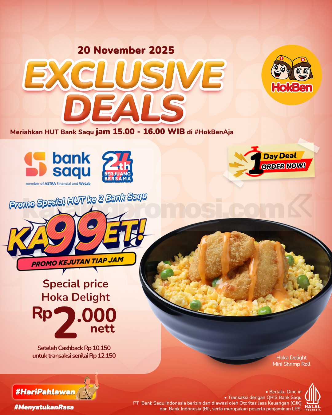 Promo HokBen Bank Saqu Hoka Delight Rp2.000 berlaku 20 November 2025 pukul 15.00–16.00 WIB
