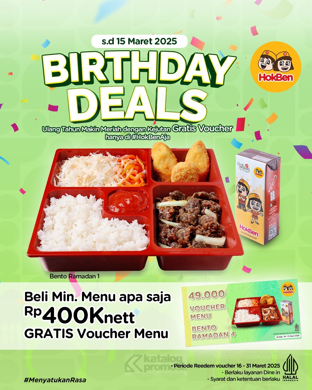 Promo ini berlaku hingga tanggal 26 November 2025, khusus layanan Dine In. Jangan sampai ketinggalan kesempatan buat manjain perut dengan harga super hemat sambil santai di HokBen favoritmu!