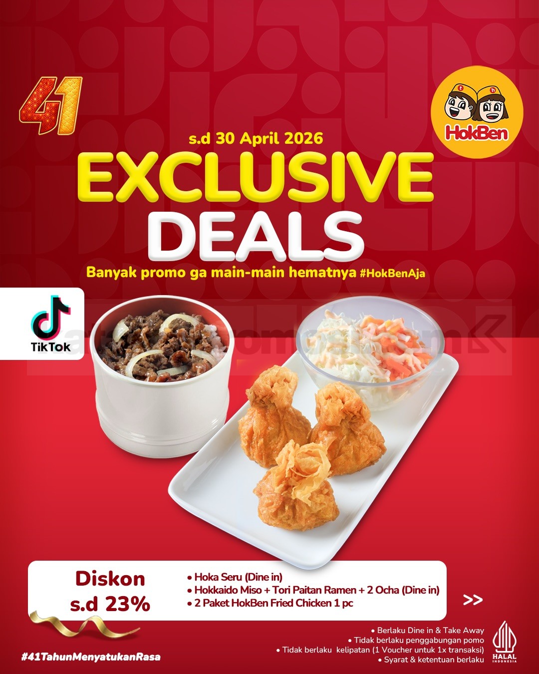 Promo HokBen Exclusive Deals jadi momen yang pas buat kamu yang ingin menikmati menu favorit dengan harga lebih hemat. Apalagi di bulan penuh kebahagiaan ini, HokBen merayakan ulang tahun ke-41 🎉, jadi makin banyak penawaran menarik yang sayang banget kalau dilewatkan.