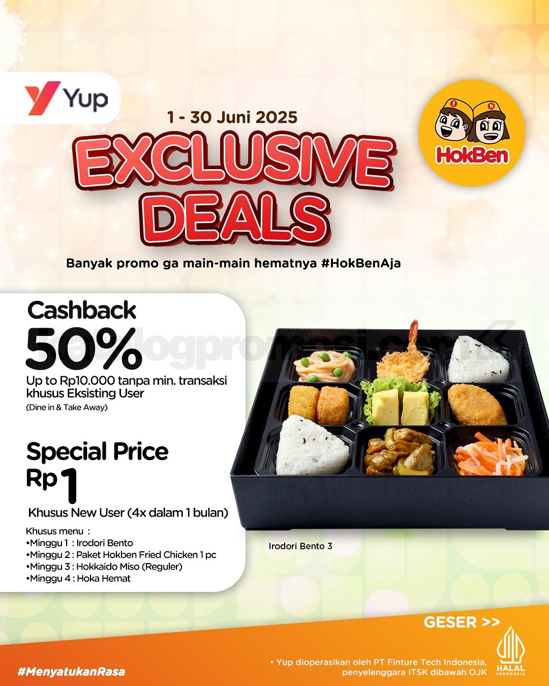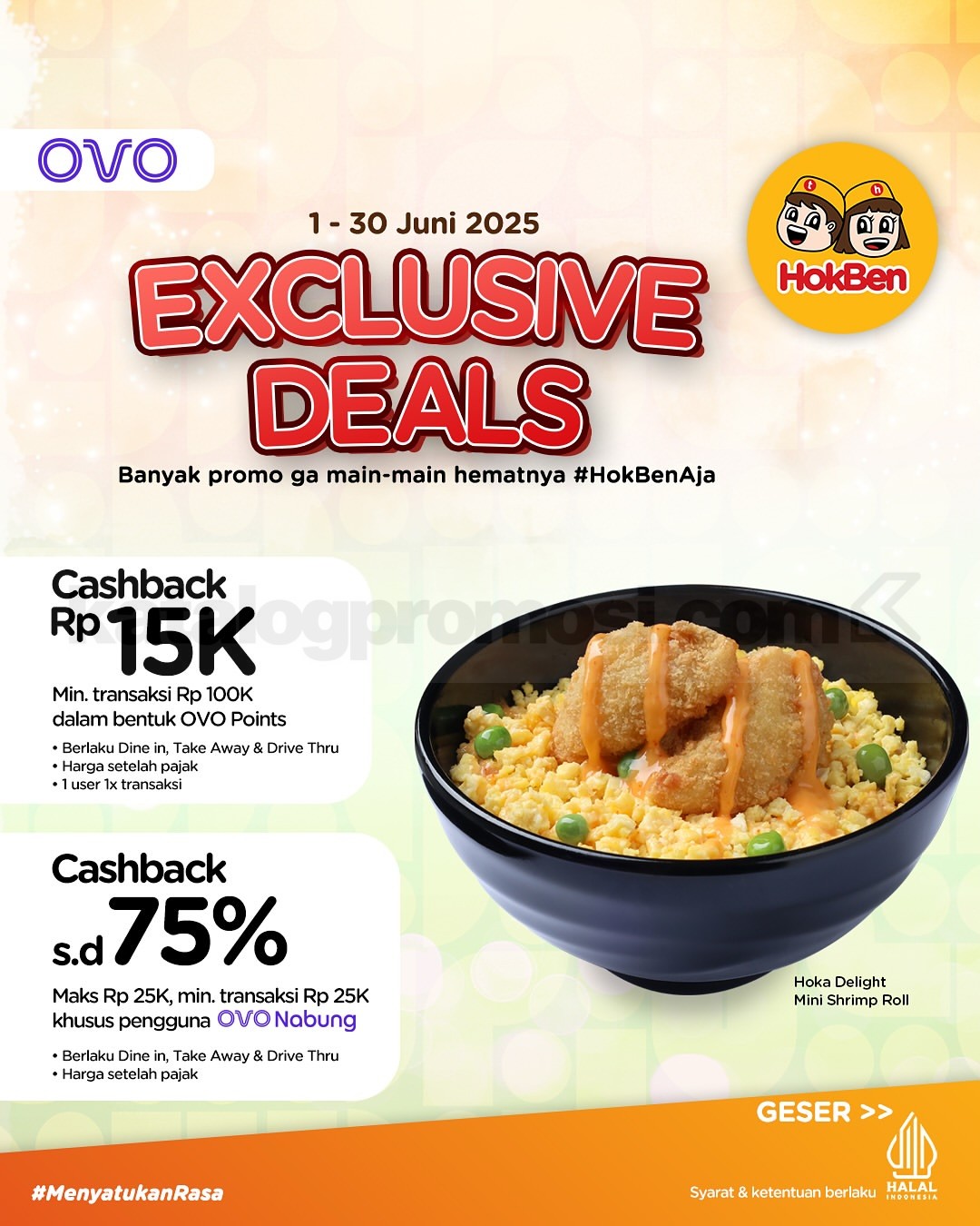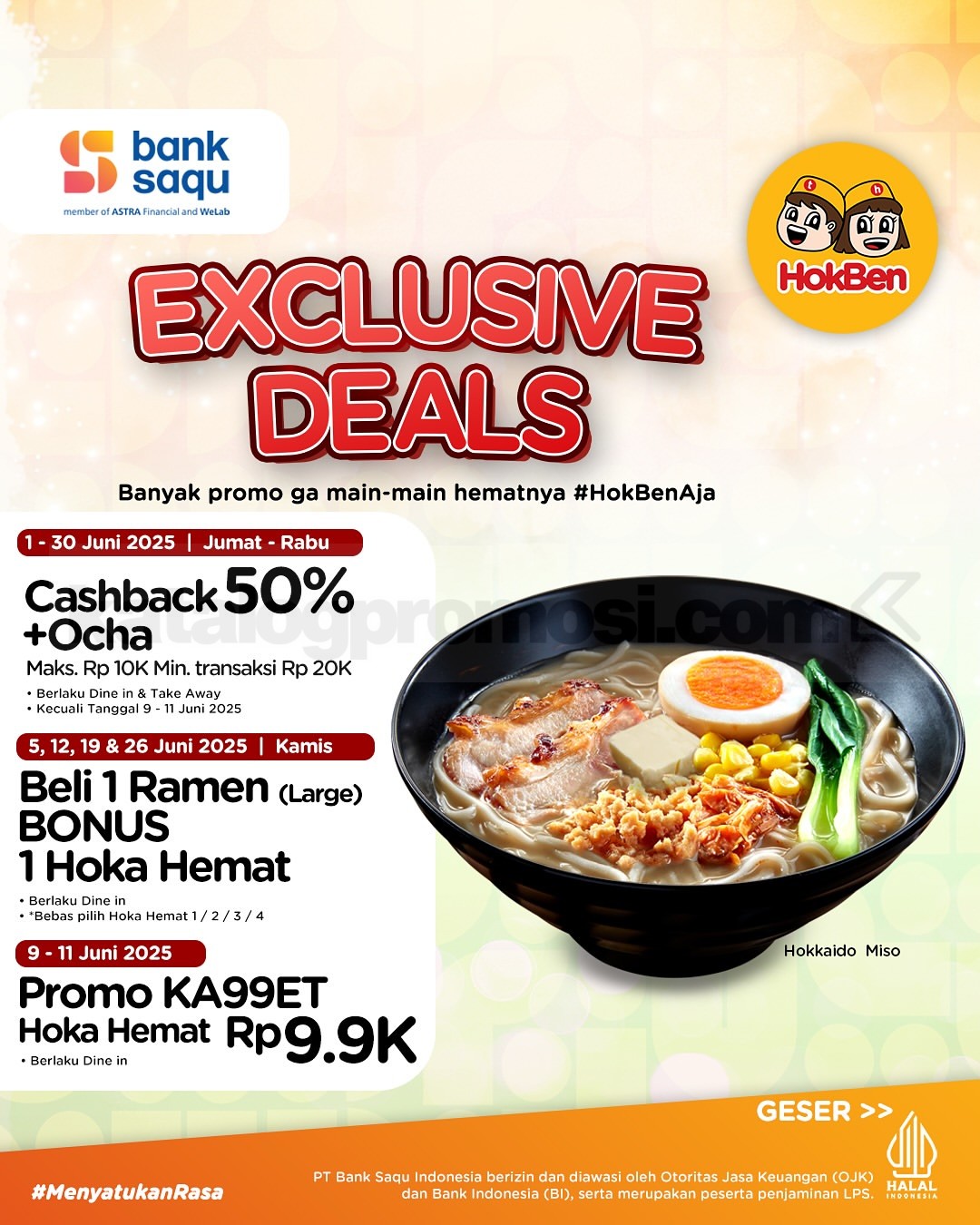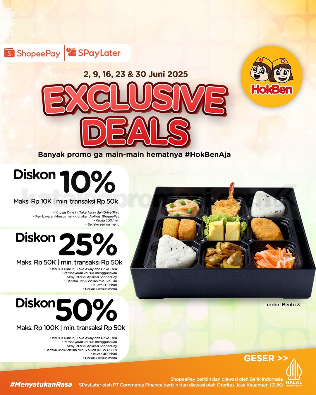 Promo HokBen Exclusive Deals Juni 2025: cashback, diskon hingga 50%, hingga menu Rp1 dari OVO, ShopeePay, Yup, dan lainnya! Cek daftar lengkapnya👇
