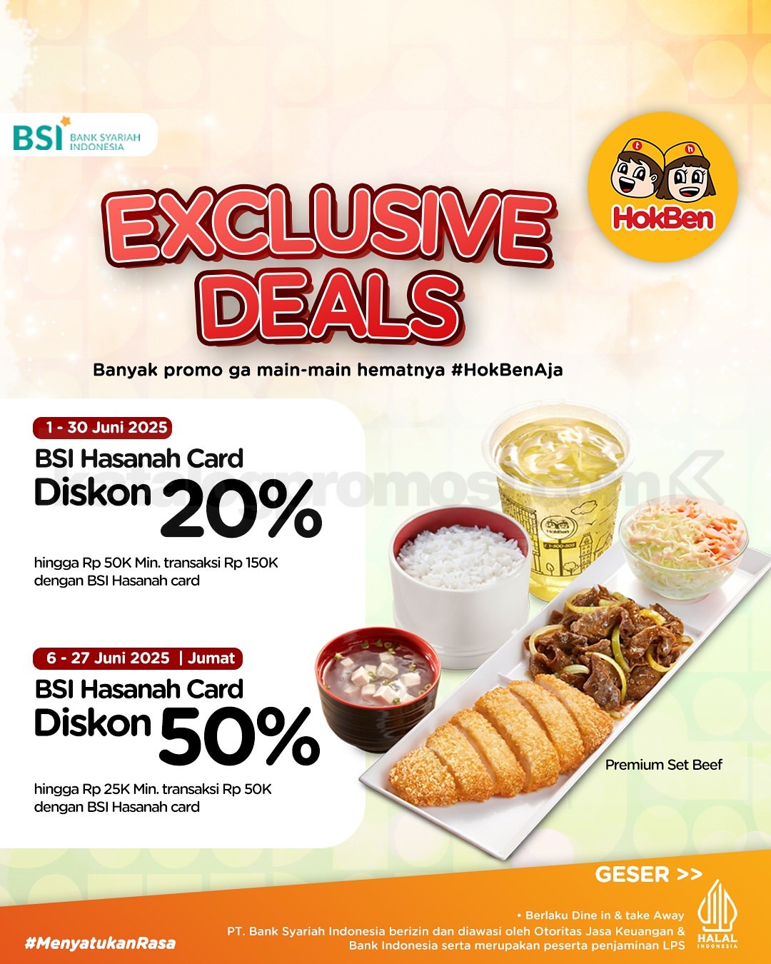 Yuk pilih metode pembayaran favoritmu dan nikmati semua promo HokBen Exclusive Deals di bulan Juni ini 🥳
