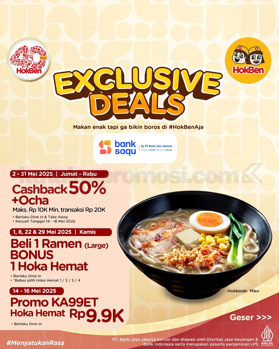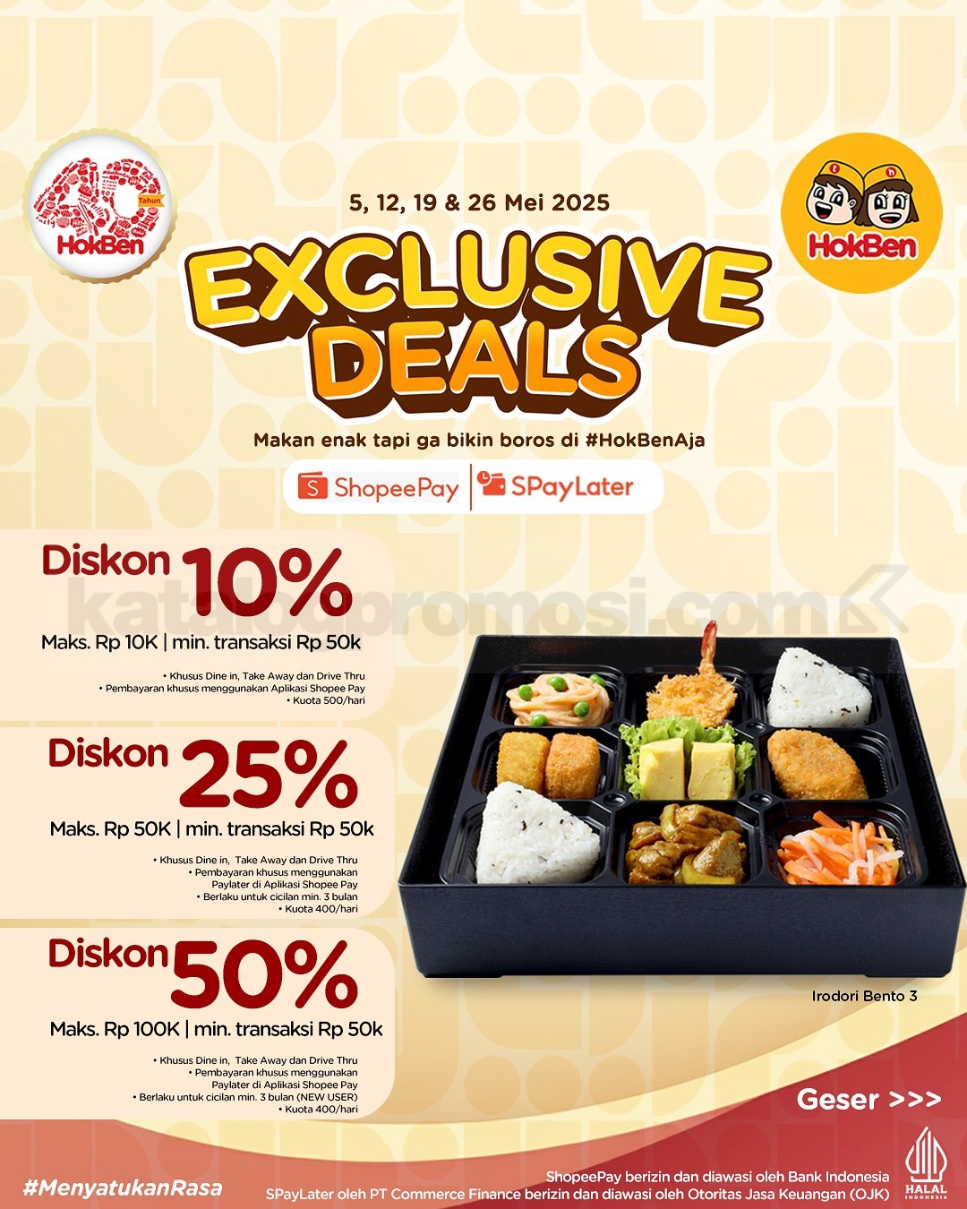 Promo HokBen Exclusive Deals Juni 2025: cashback, diskon hingga 50%, hingga menu Rp1 dari OVO, ShopeePay, Yup, dan lainnya! Cek daftar lengkapnya👇