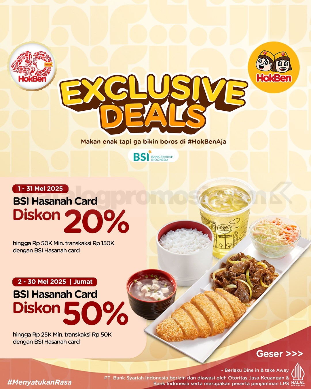 Yuk pilih metode pembayaran favoritmu dan nikmati semua promo HokBen Exclusive Deals di bulan Juni ini 🥳