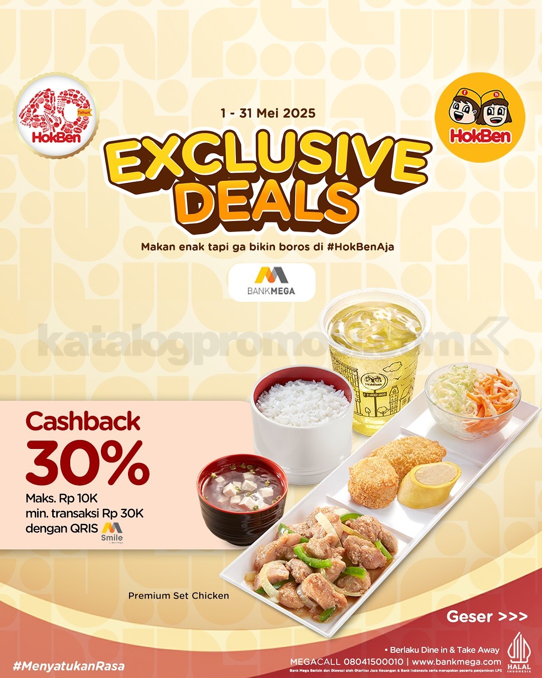 👉 Cek gambar promo HokBen Exclusive Partner Deals di bawah ini untuk lihat pilihan menu, hadiah, dan info harga promo lengkap!