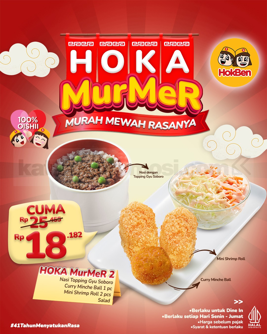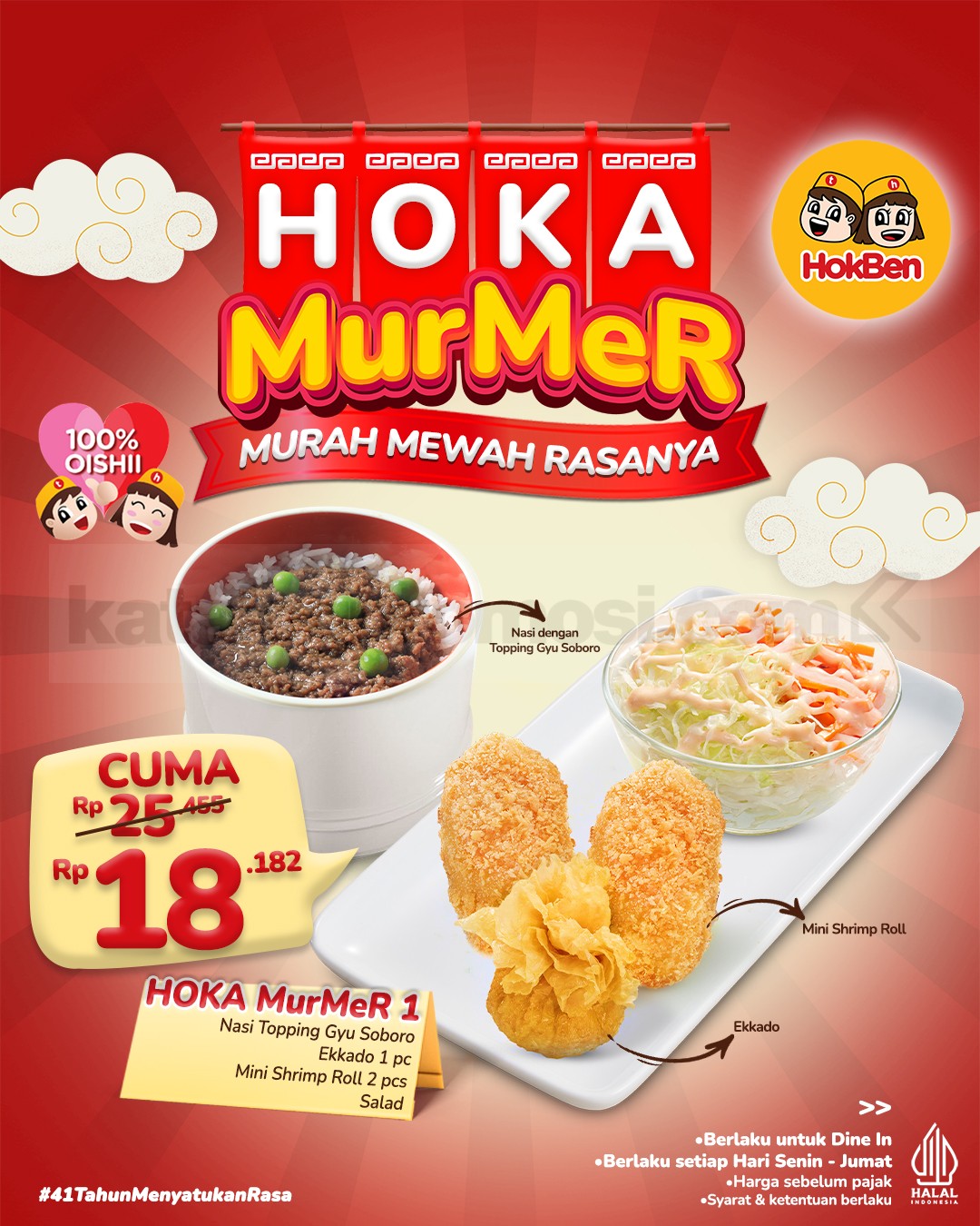 Dengan pilihan menu yang variatif dan harga yang tetap bersahabat, paket HOKA MurMeR ini jadi solusi praktis buat kamu yang mau makan enak tanpa ribet. Yuk langsung mampir ke HokBen dan cobain sendiri sensasi βmurah mewahβ yang satu ini! π