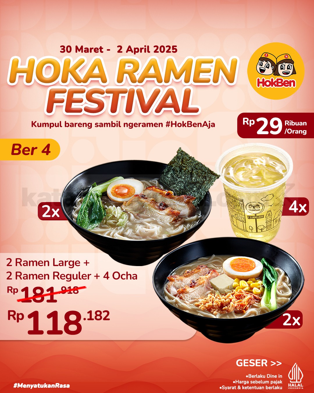 Promo HokBen Hoka Ramen Festival mulai Rp. 29 ribu paket bundling ramen + ocha untuk 2β4 orang berlaku 30 Maret 2026 – 2 April 2026 di seluruh outlet