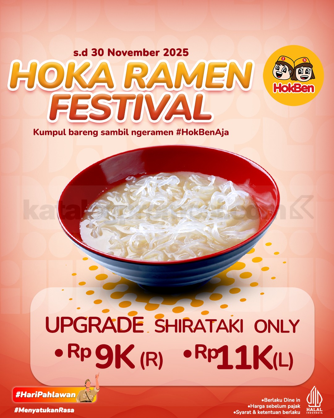 Mau kuah ramen pedas, gurih, atau segar, semua ada di menu favorit HokBen. Kamu juga bisa upgrade mie ramen ke shirataki mulai Rp9.000 aja biar makin sehat dan kenyang. Promo ini berlaku untuk layanan dine in di semua store HokBen, cocok banget buat kumpul bareng sambil ngeramen! 🥢🍜✨