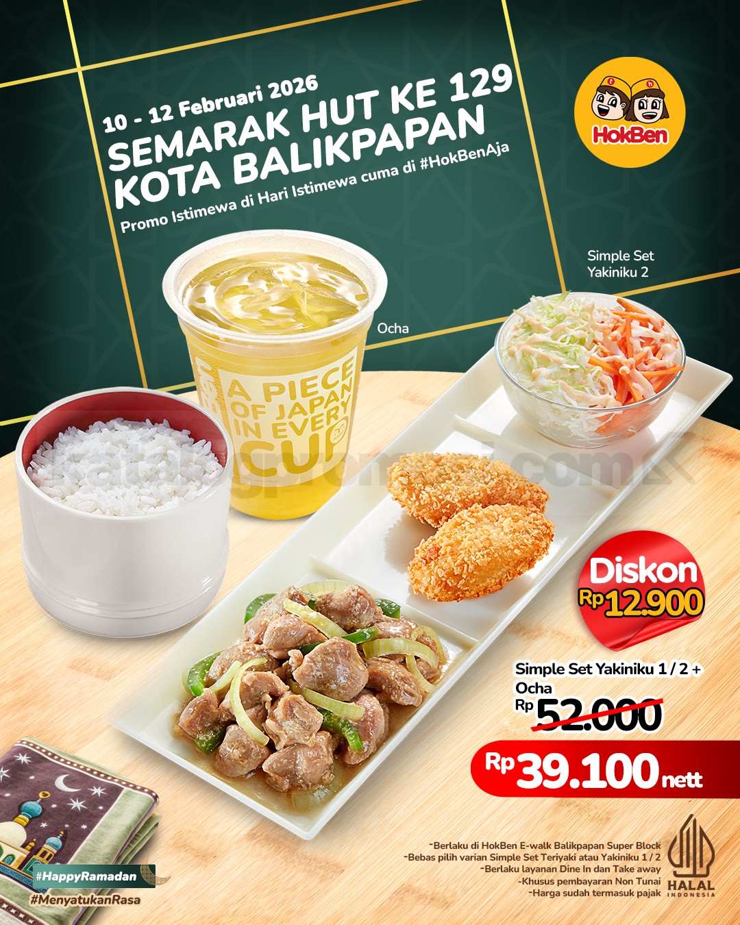 Promo HokBen HUT Balikpapan Diskon Rp. 12.900 potongan menu set bayar non tunai berlaku mulai tanggal 10 Februari 2026 – 12 Februari 2026 di HokBen E-Walk Balikpapan