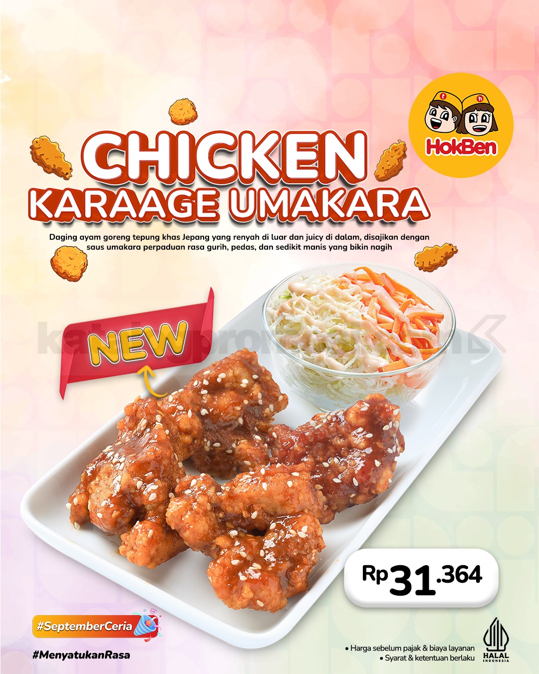 Promo HokBen Menu Baru! Chicken Karaage Umakara cuma Rp31.364, Yuk cobain Sekarang di Hokben terdekat.
