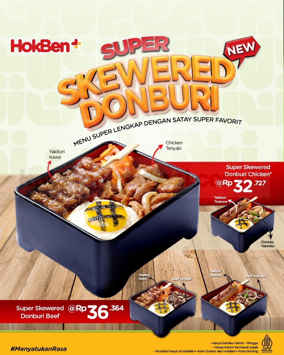 Harga dapat berbeda tergantung lokasi outlet HokBen.