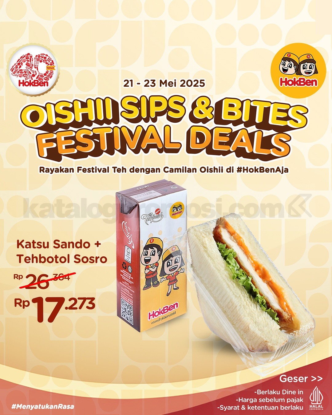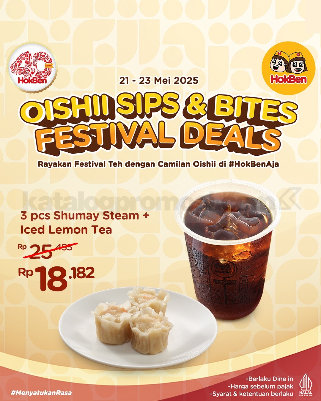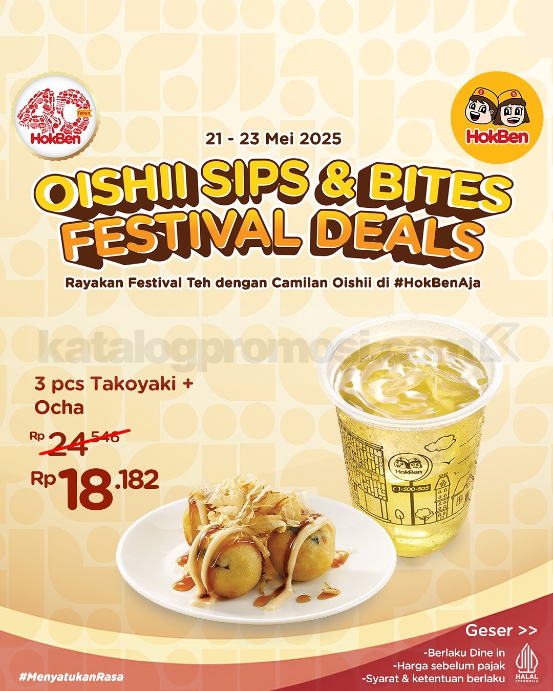 Promo HokBen Oishi Sips & Bites Festival! Nikmati camilan + minuman mulai Rp17.273 untuk rayakan Hari Internasional Teh. Hanya 1 hari tanggal 21–23 Mei 2025!