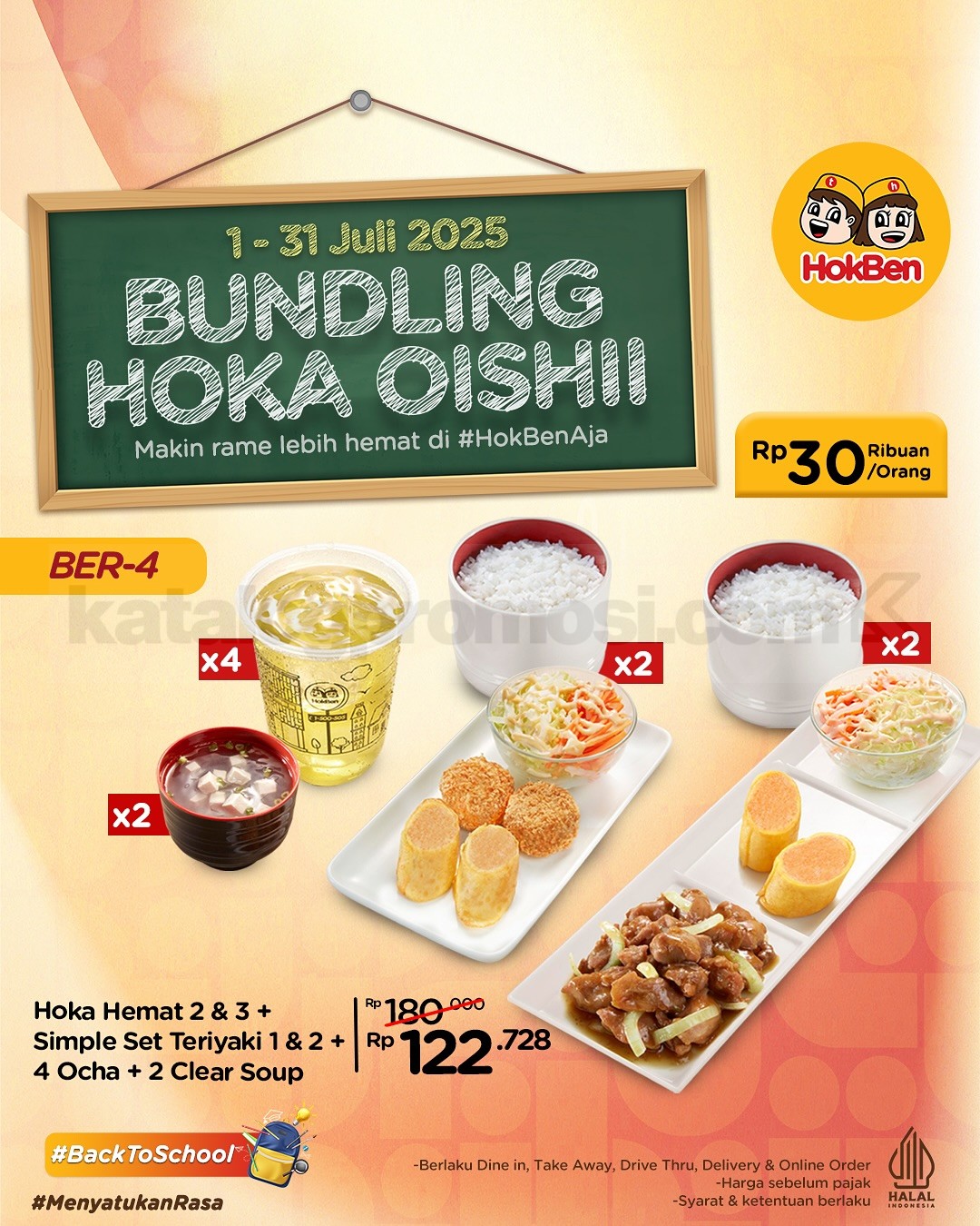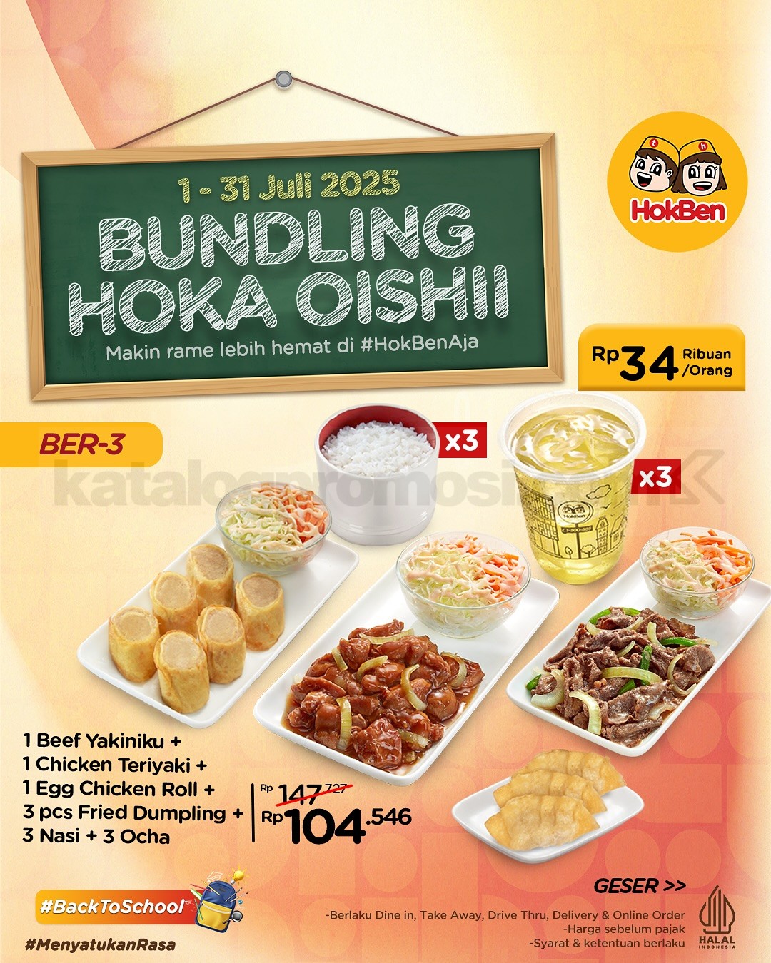 Jangan sampai kehabisan promo hemat ini! Pesan Paket Bundling Hoka Oishii di HokBen favorit kamu dan nikmati makan enak ramean lebih hemat cuma selama Agustus 2025.