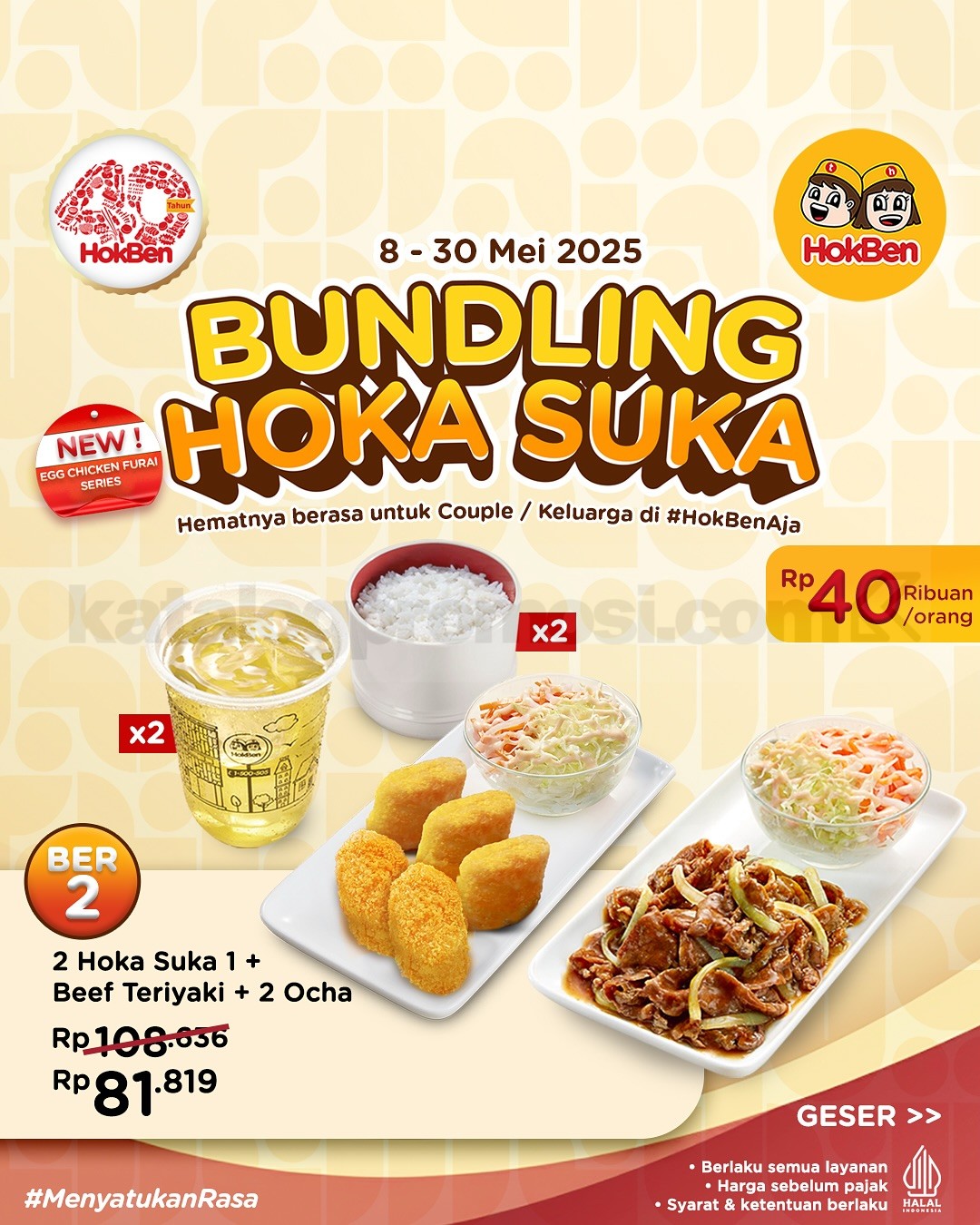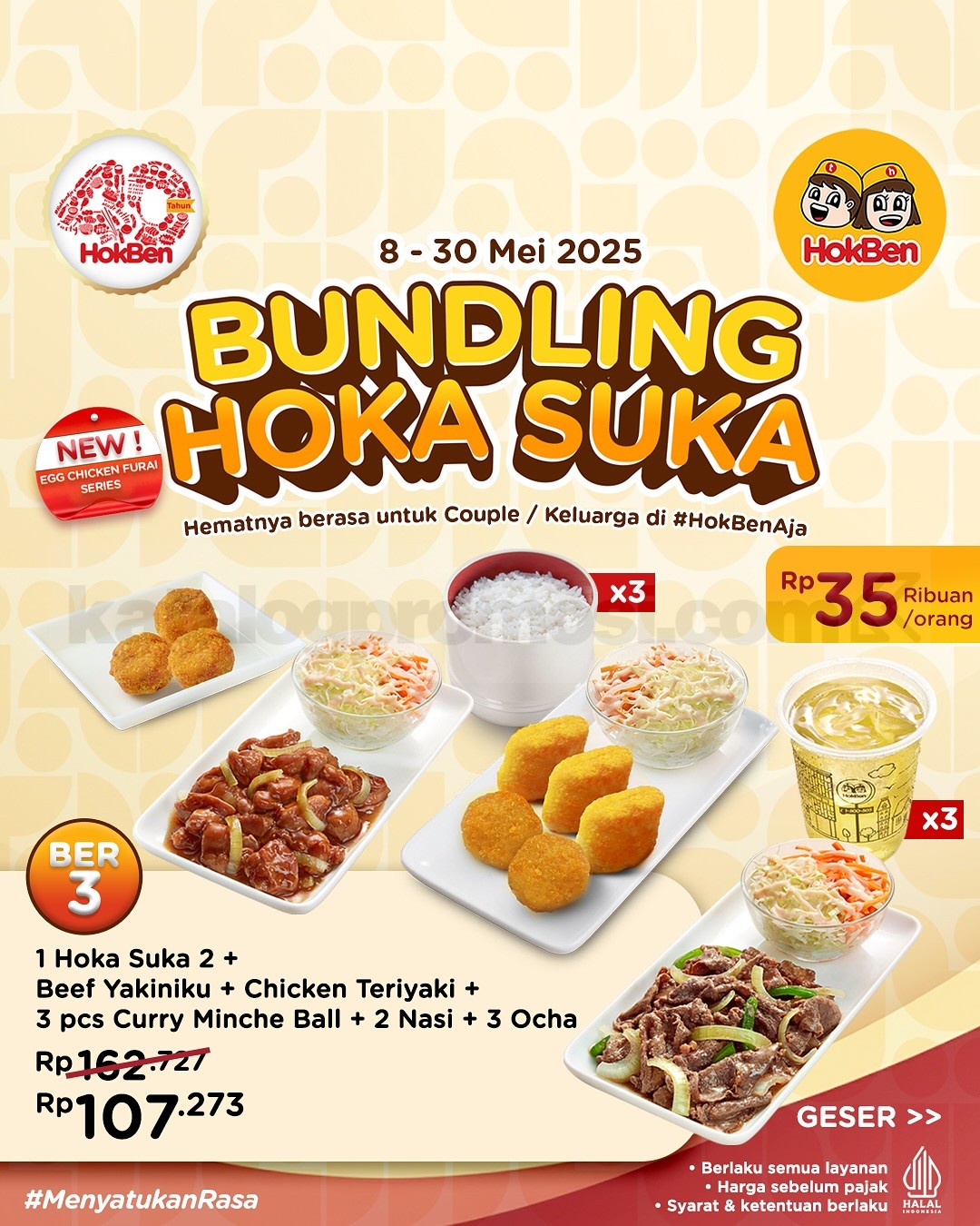 Promo HokBen Spesial Bundling Hoka Suka mulai Rp. 32Ribuan per orang, berlaku mulai tanggal 08 – 30 Mei 2025