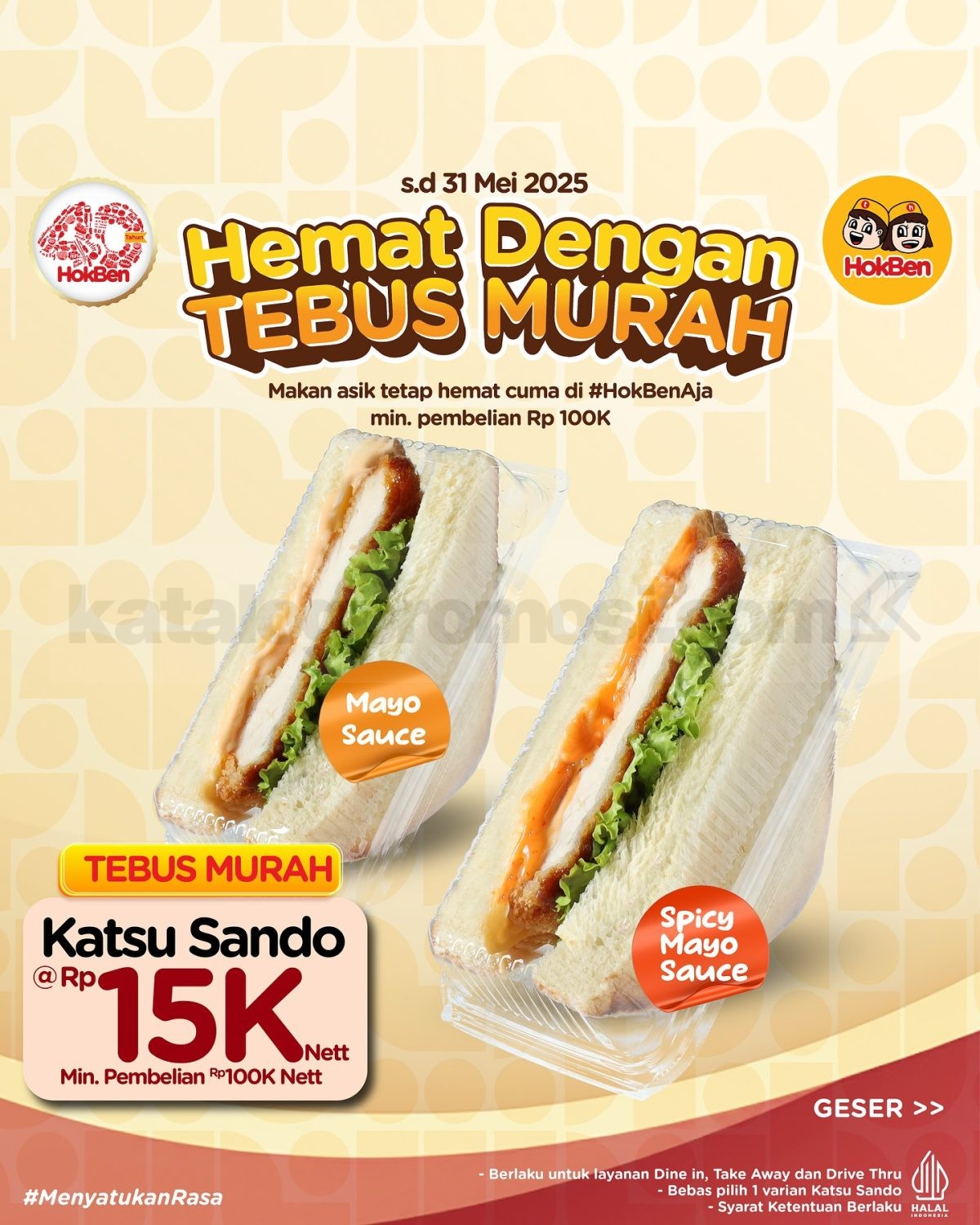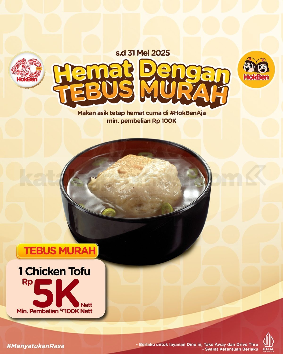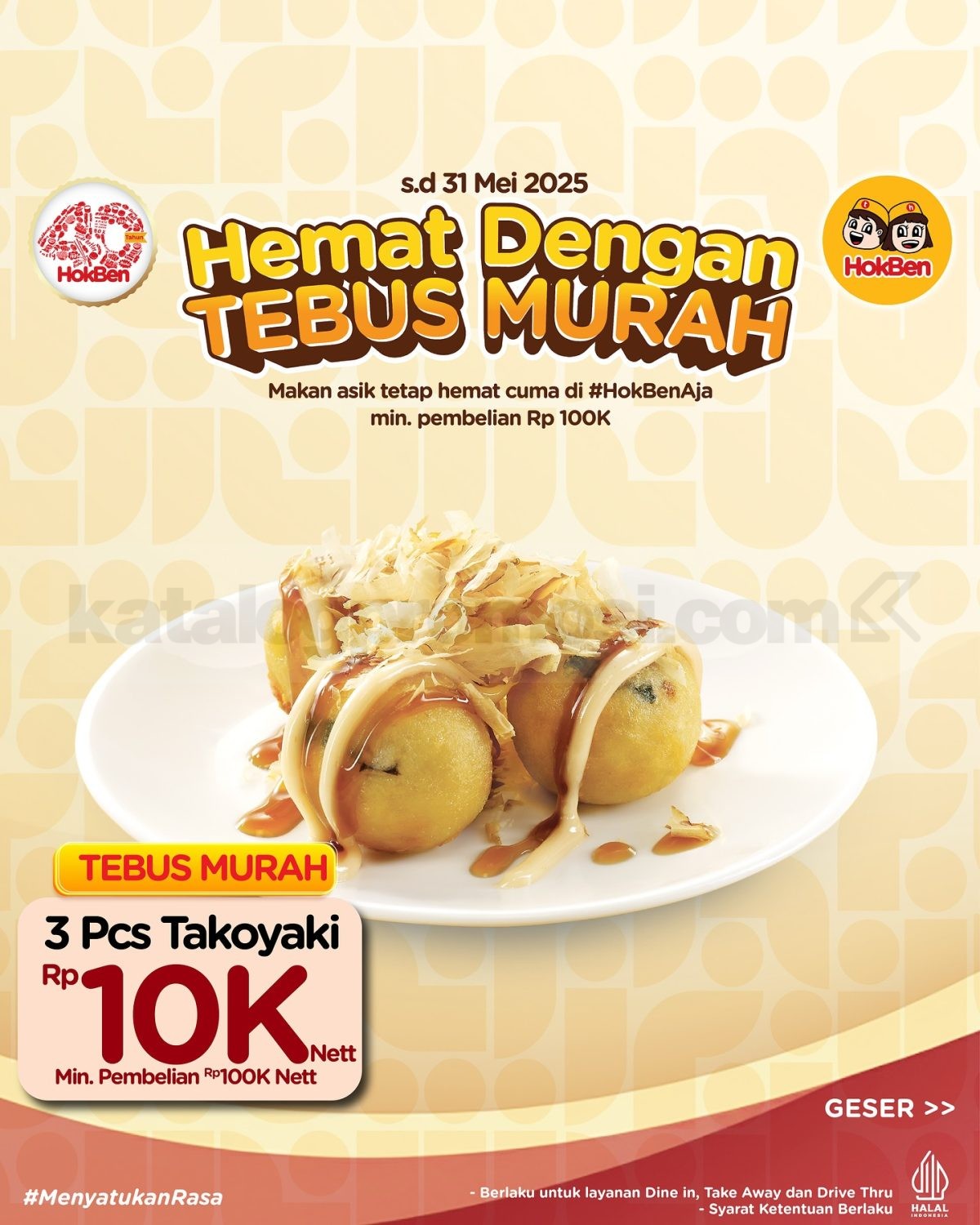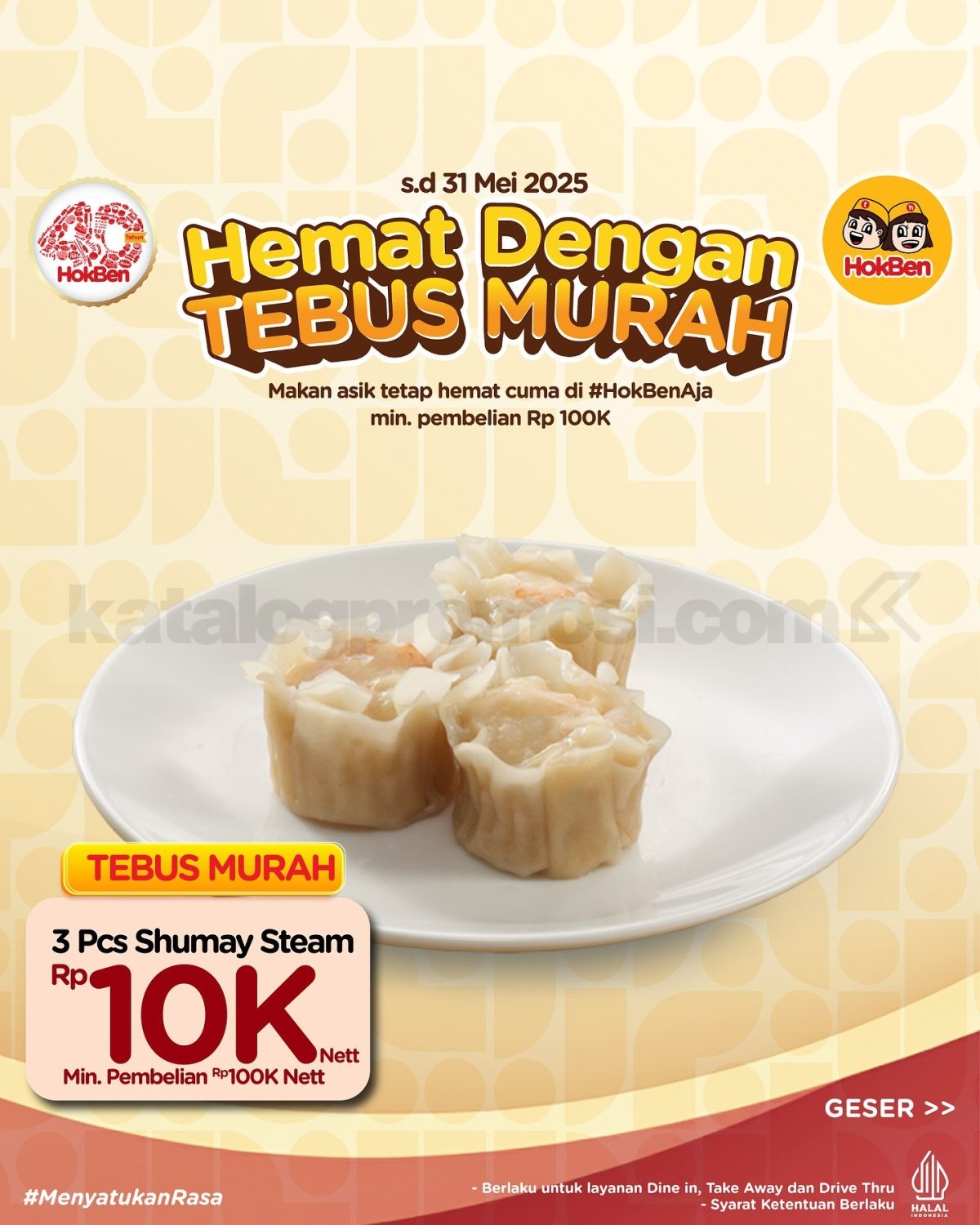 Promo HokBen Tebus Murah Menu Pilihan Mulai Rp10.000 dengan min transaksi Rp100.000 nett, berlaku hingga 30 November 2025 di seluruh outlet HokBen.