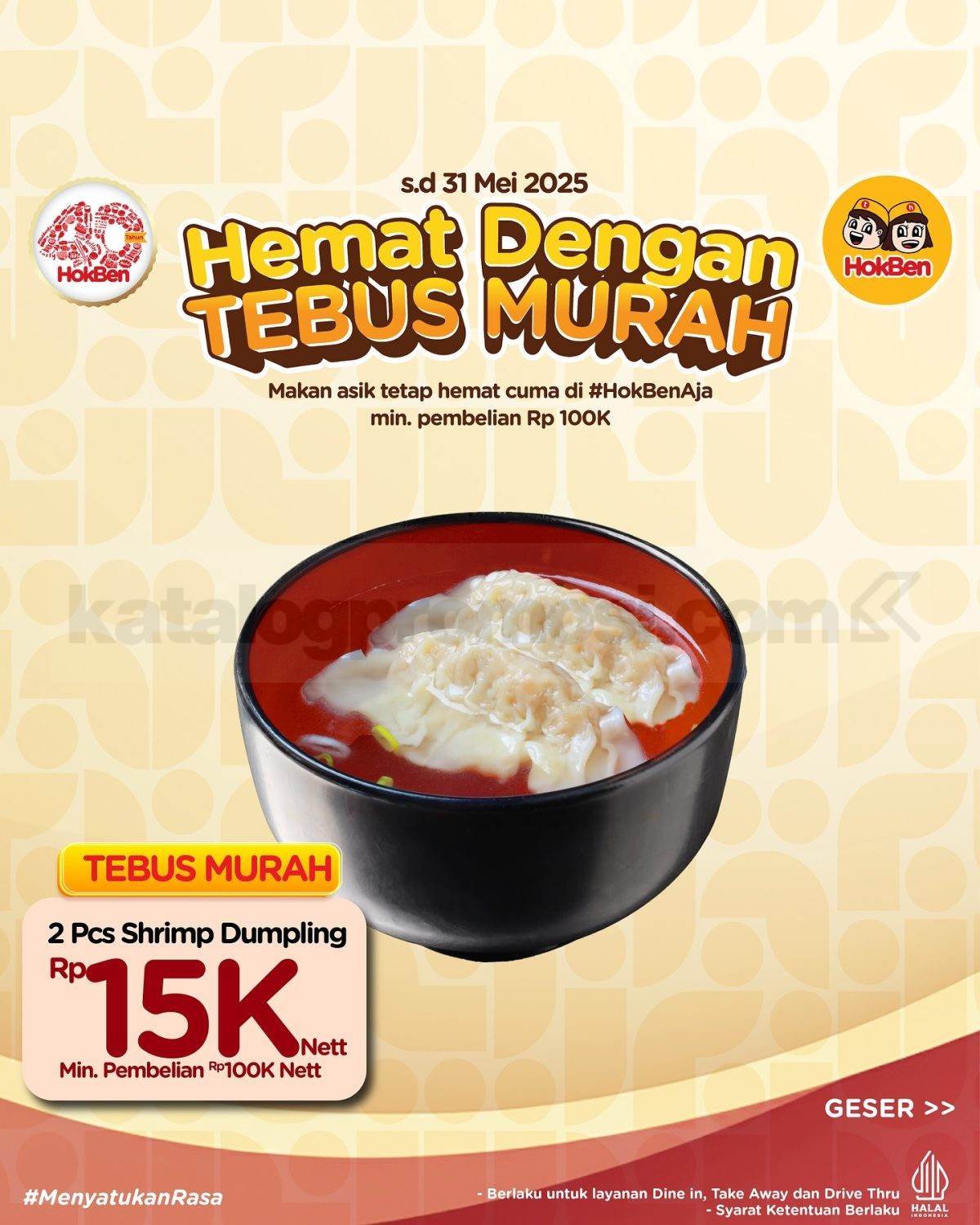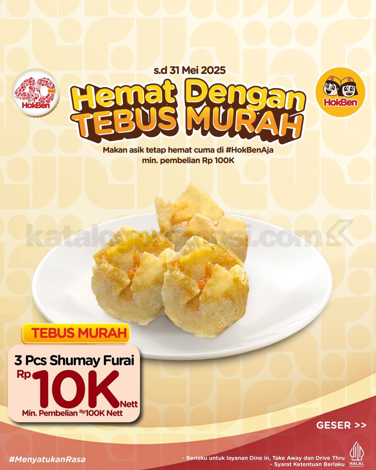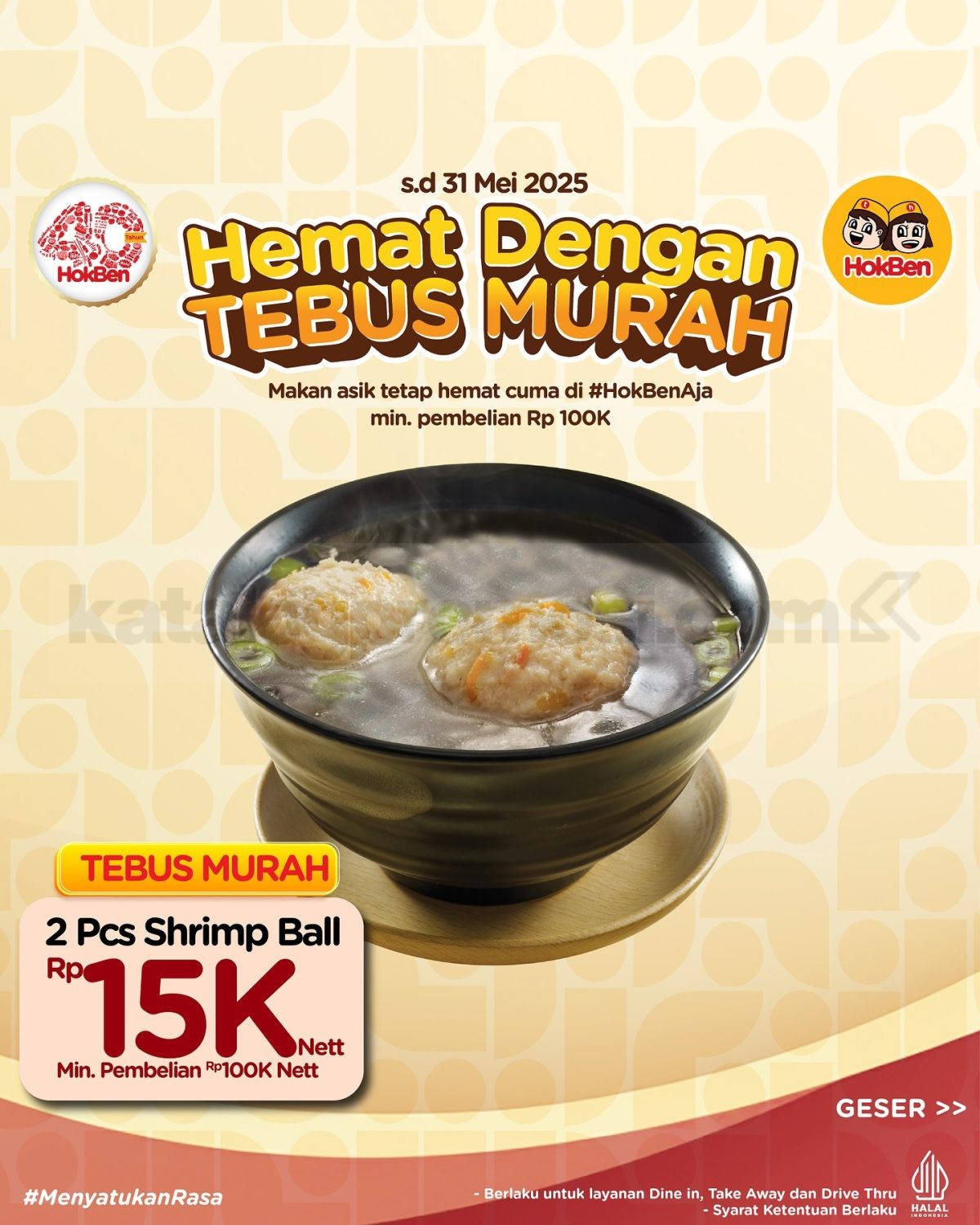 Dapatkan kesempatan menebus menu pilihan HokBen dengan harga spesial.
