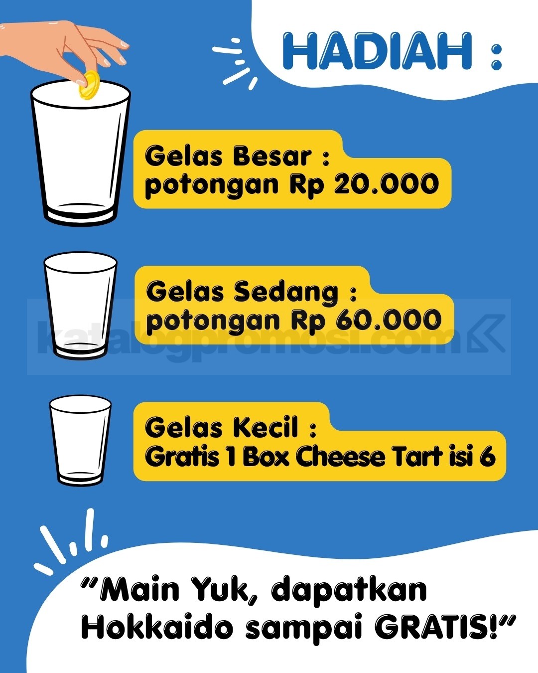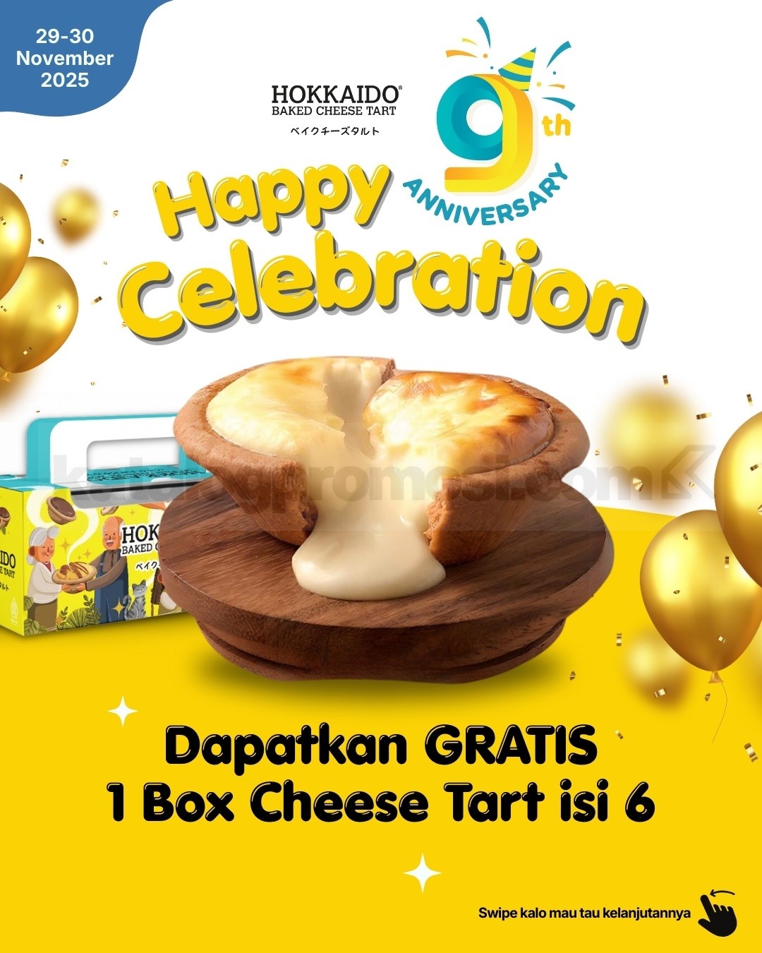 ๐ Cek gambar promo Hokkaido Anniversary Gratis 1 Box Cheese Tart di bawah ini untuk lihat mekanisme permainan dan hadiah serunya!