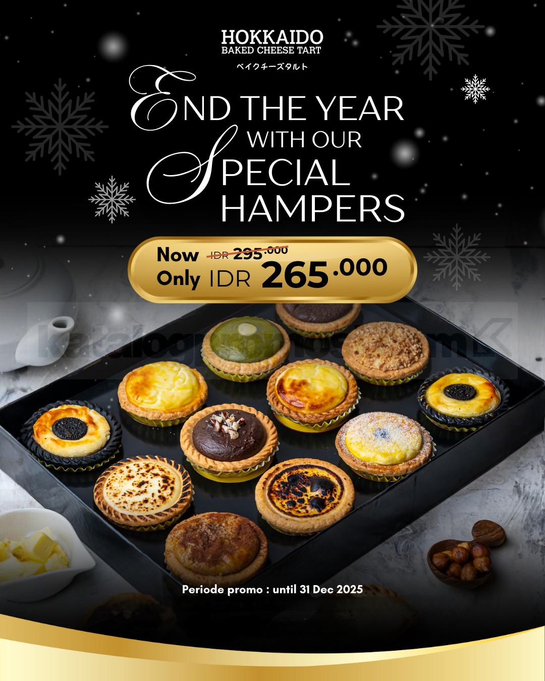 Jangan lewatkan Promo Hokkaido Baked Cheese Tart Special Hampers buat nutup tahun dengan rasa manis yang classy dan memorable. Yuk amankan sekarang sebelum periodenya habis dan stoknya ludes! 🎉🍰