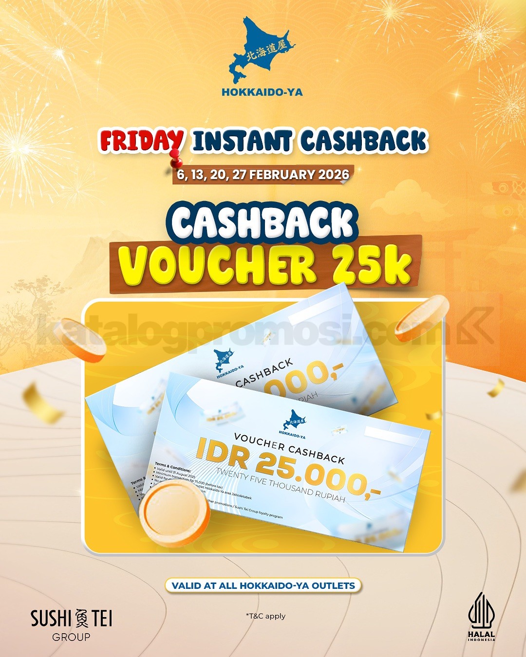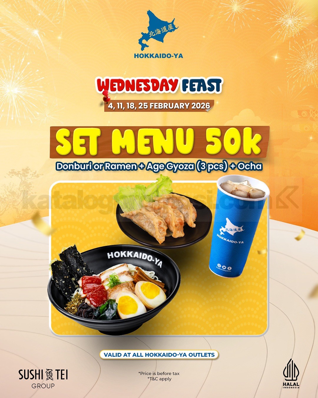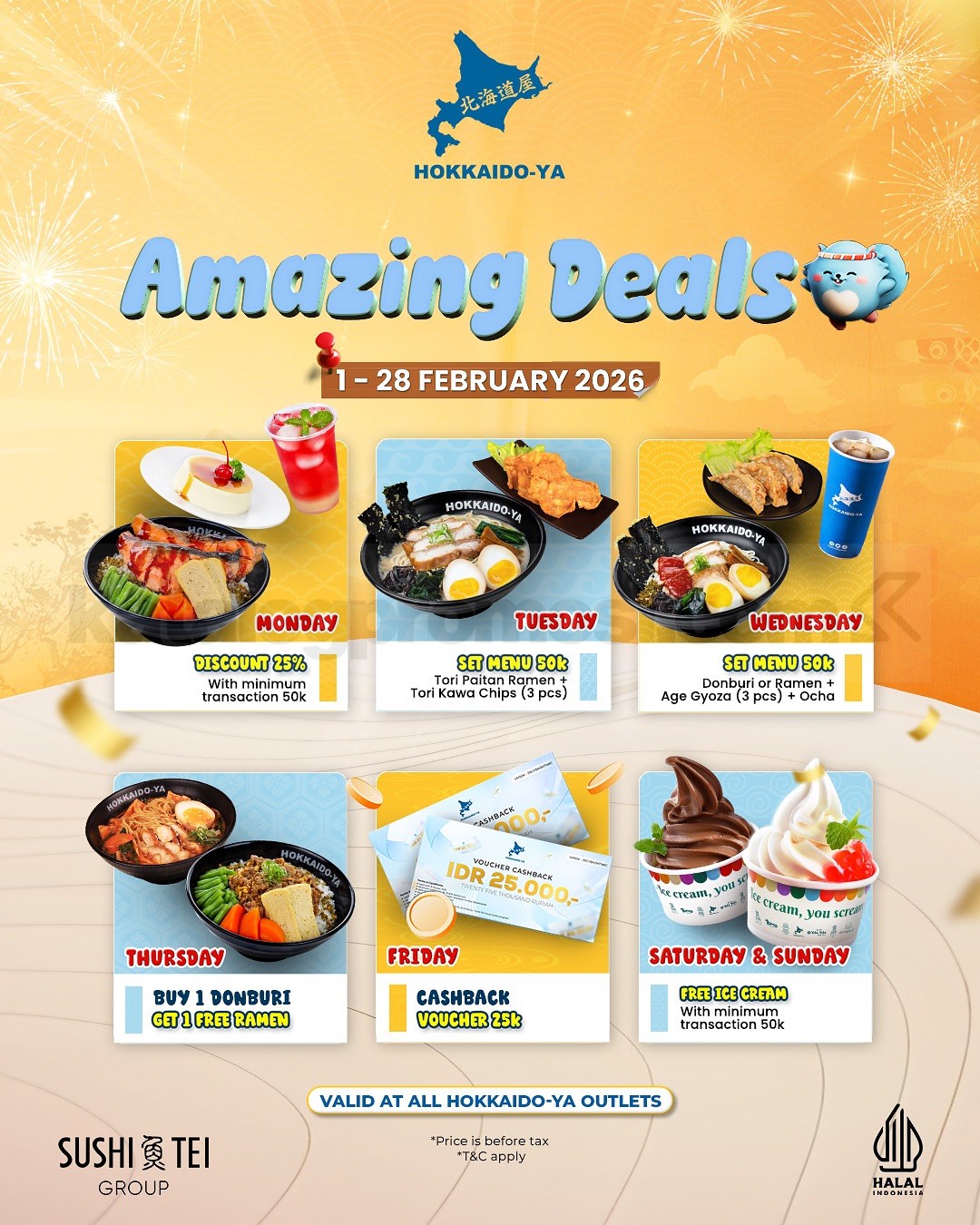 Promo HOKKAIDO-YA Amazing Deals mulai Rp. 50.000 berlaku 1 – 28 Februari 2026 di seluruh outlet dengan promo berbeda setiap hari.