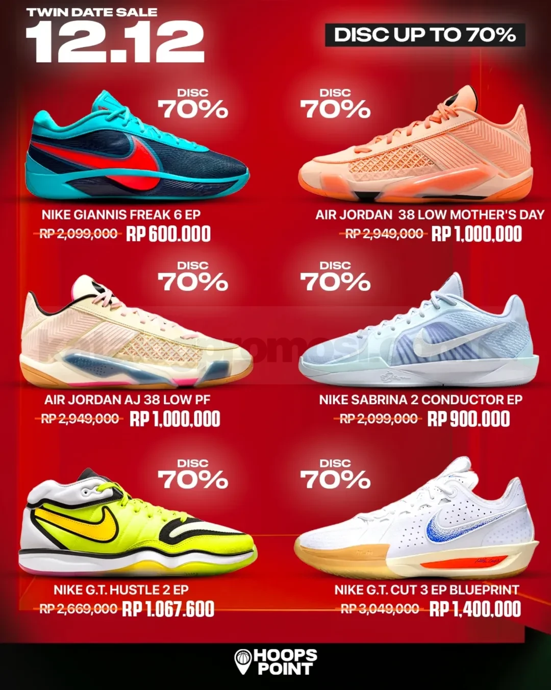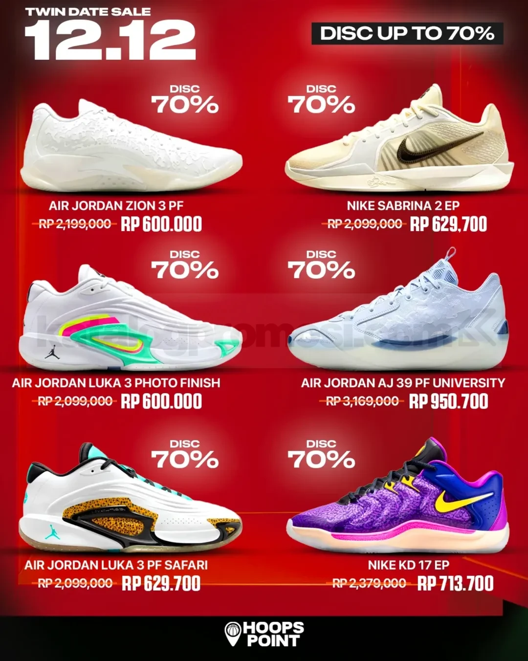 Kalau kamu lagi berburu sneaker akhir tahun, promo Hoops Point 12.12 Twin Date Sale diskon hingga 70% ini bisa jadi momen upgrade koleksi tanpa bikin dompet berat.