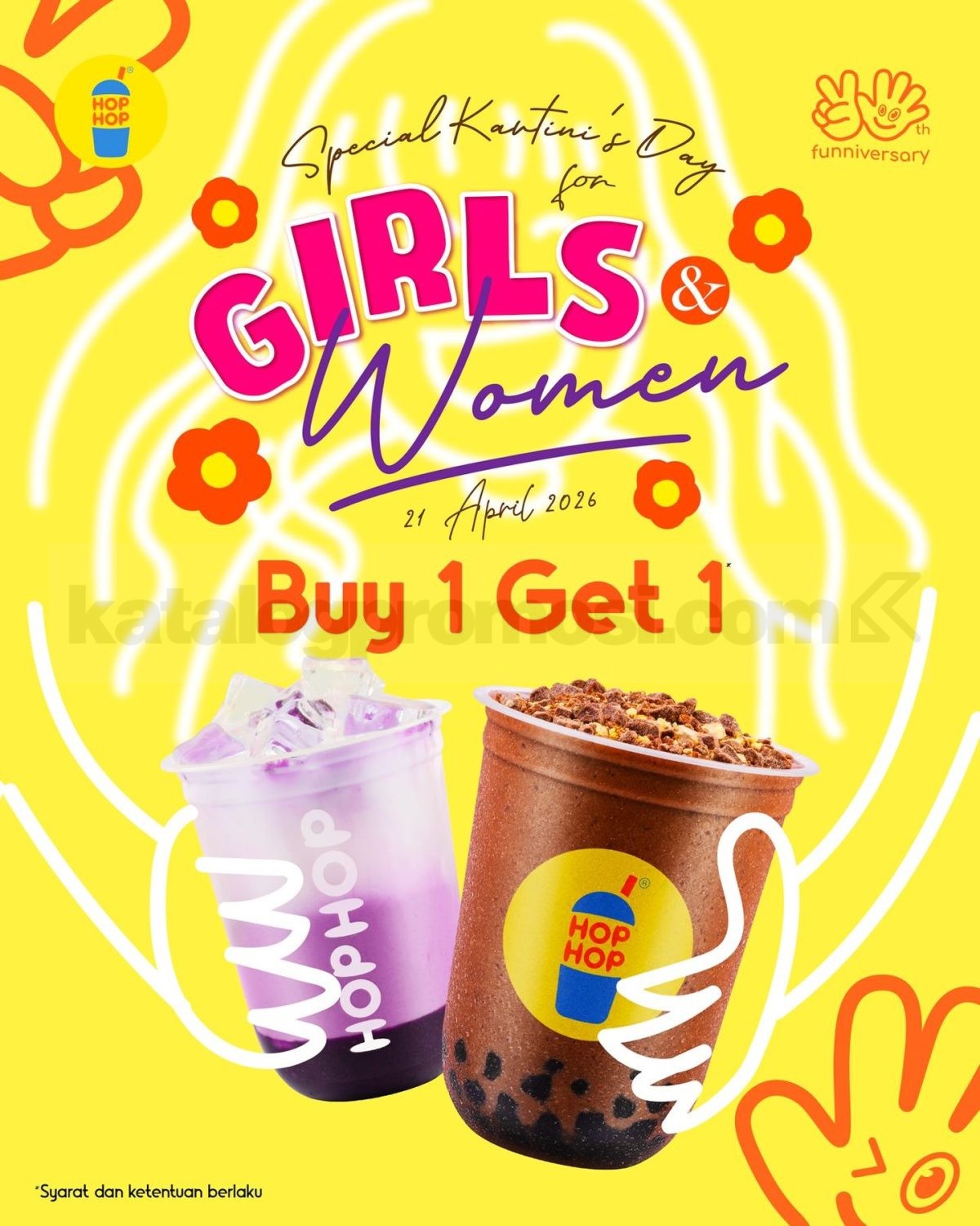 Yuk rayakan Hari Kartini dengan cara yang lebih seru lewat promo minuman dari HopHop ini. Ajak teman atau keluarga dan nikmati sensasi beli satu gratis satu yang bikin momen jadi makin berkesan π
