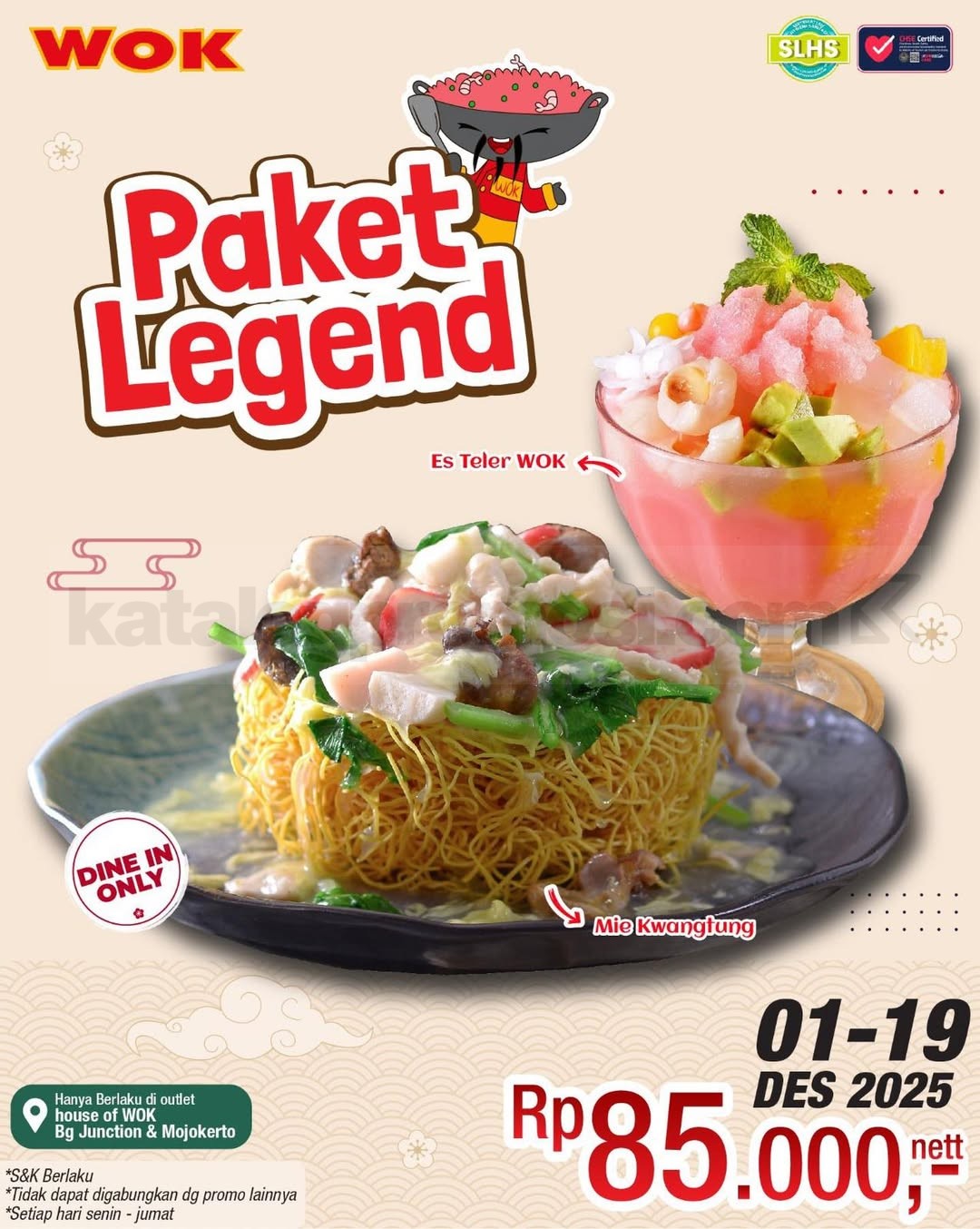 Promo House of WOK Paket Legend Mulai Rp. 85.000, nikmati Mie Kwangtung & Es Teler WOK, berlaku 1–19 Desember 2025 di outlet BG Junction & Mojokerto.