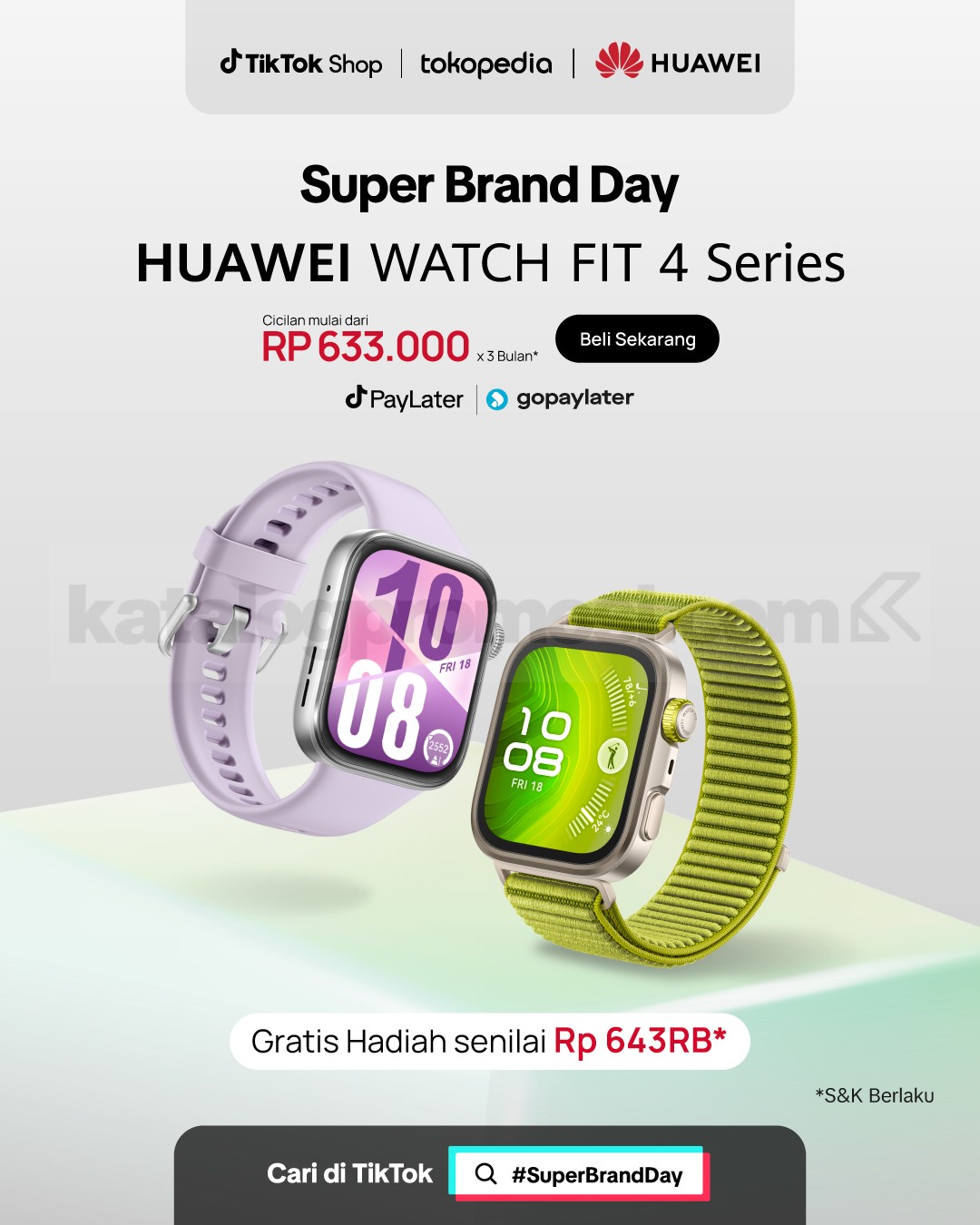 Promo Huawei Watch Fit 4 Super Brand Day Gratis Hadiah Langsung tanggal 10โ12 Juni 2025! Dapatkan diskon hingga 50% untuk produk Huawei dan, cicilan mulai Rp633.000 dan hadiah gratis senilai Rp643.000!