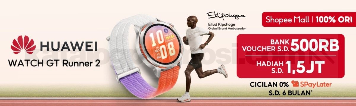 👉 Cek gambar promo HUAWEI WATCH GT Runner 2 di bawah ini untuk lihat detail penawaran dan bonus yang bikin makin tergoda 👇