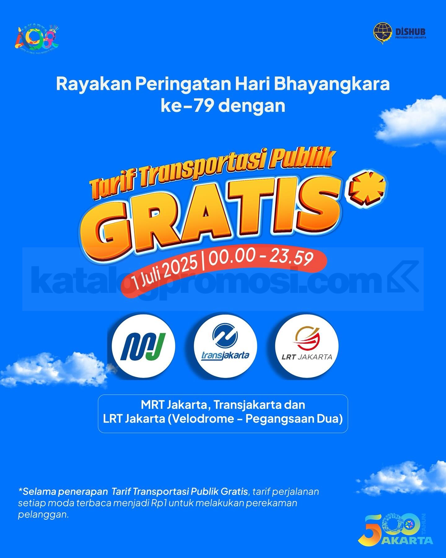 Kabar gembira buat kamu yang suka keliling Jakarta! Spesial HUT Bhayangkara ke-79, Pemprov DKI Jakarta kasih promo seru buat masyarakat berupa tarif cuma Rp. 1,- untuk naik MRT Jakarta, LRT Jakarta, dan TransJakarta di tanggal 1 Juli 2025.