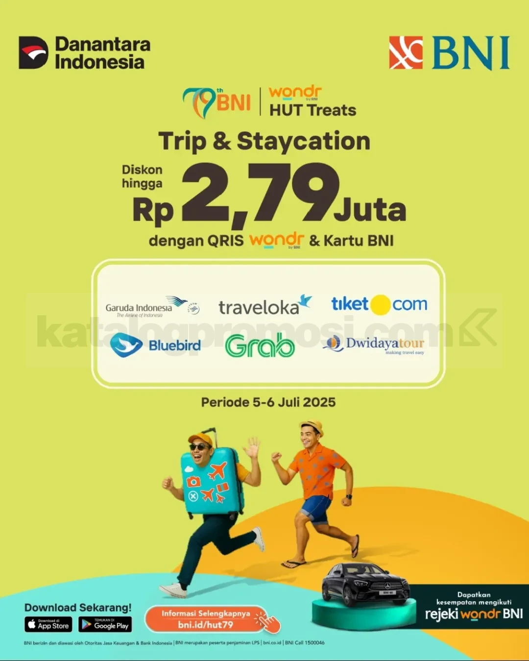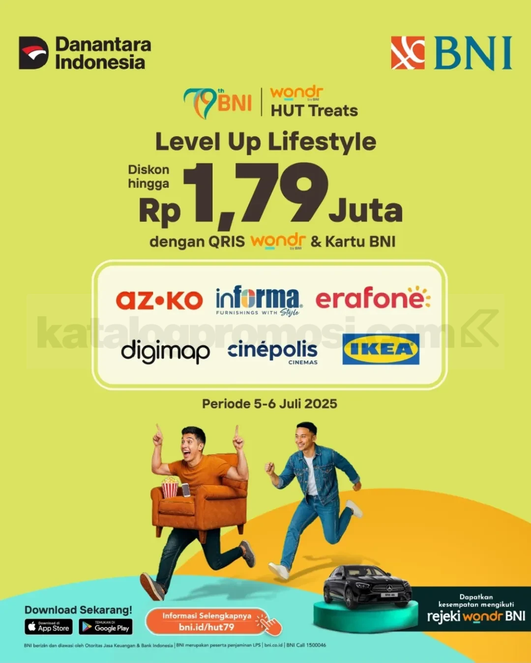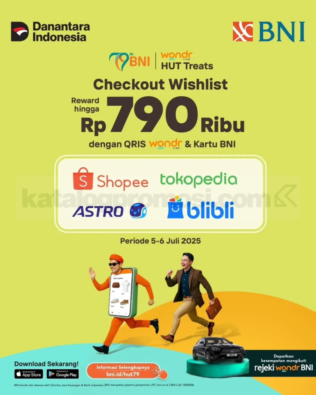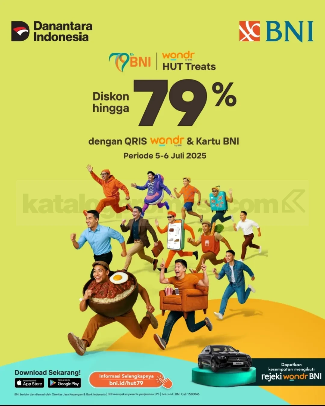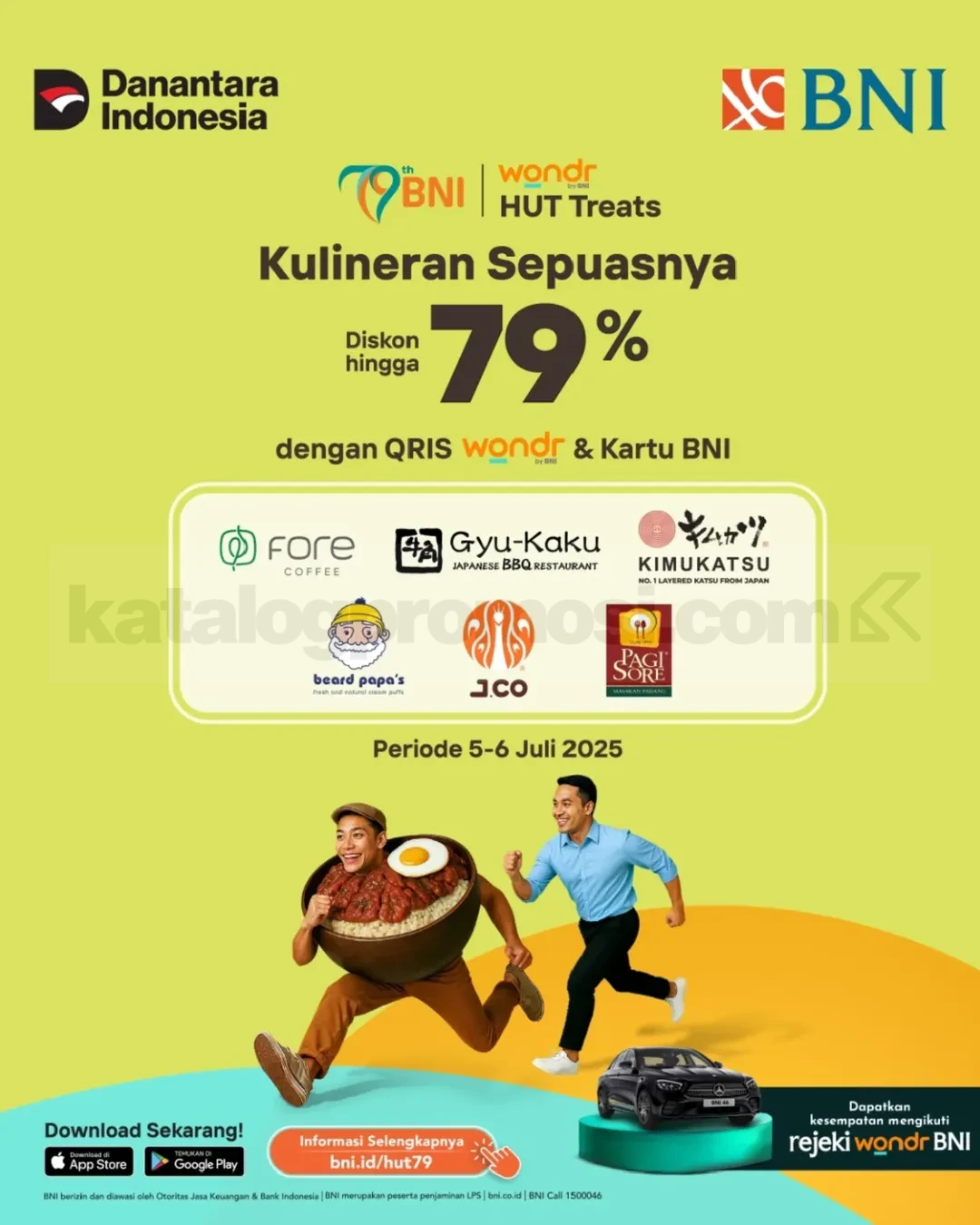 Promo HUT BNI 79, nikmatin diskon hingga 79% buat belanja, kulineran, dan kebutuhan gaya hidup cuma 5-6 Juli 2025 pakai QRIS wondr & Kartu BNI!