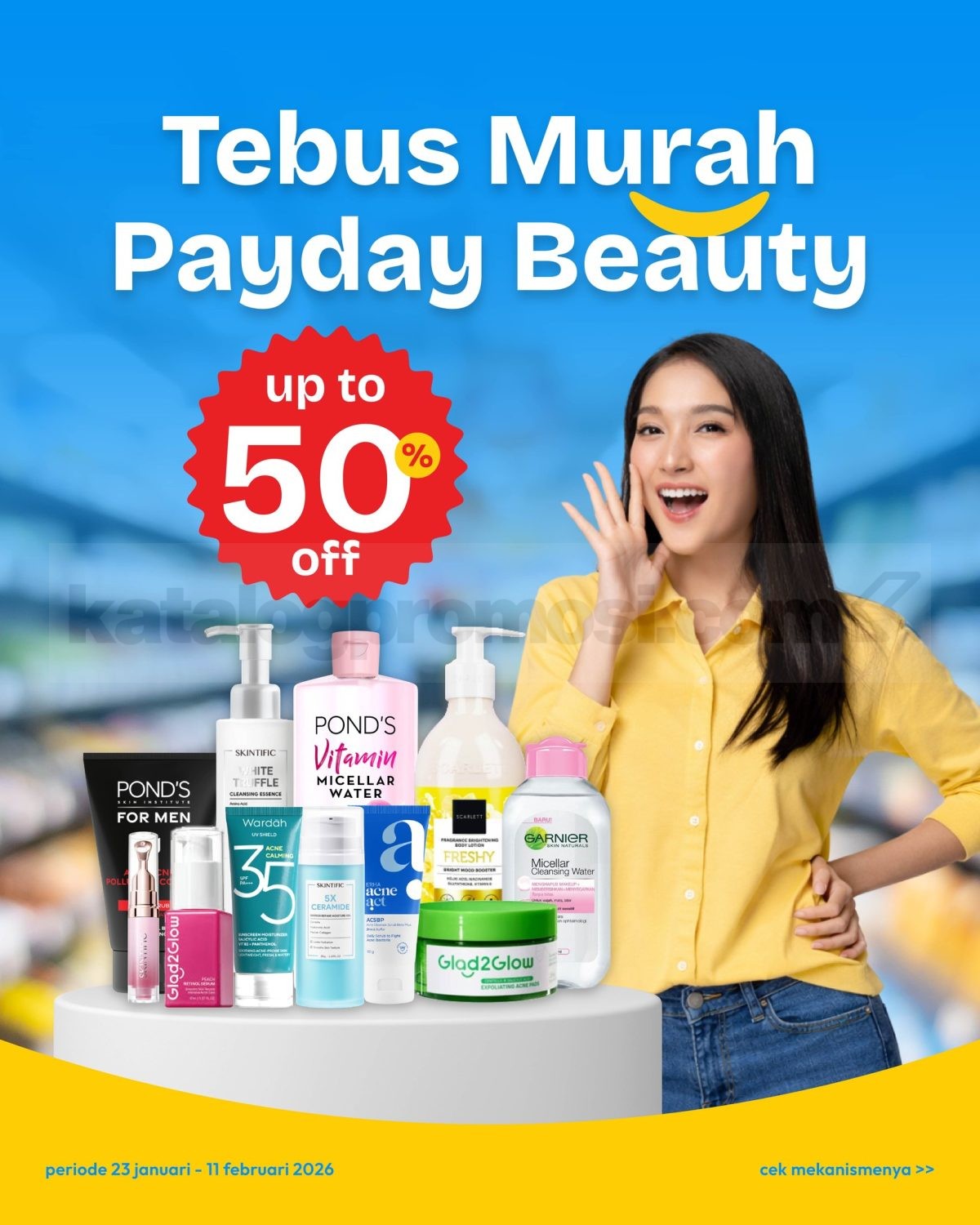 Promo Hypermart Tebus Murah Payday Beauty diskon hingga 50% berlaku 23 Januari – 11 Februari 2026, tebus produk beauty harga spesial setelah belanja minimum di toko tertentu.