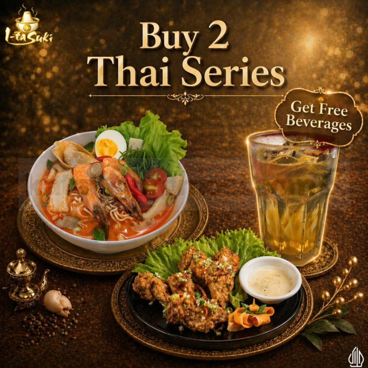 Yuk, ajak teman atau keluarga buat menikmati Thai Series di I-tasuki. Selain rasa yang kaya dan autentik, bonus minumannya bikin momen makan jadi lebih seru dan puas!