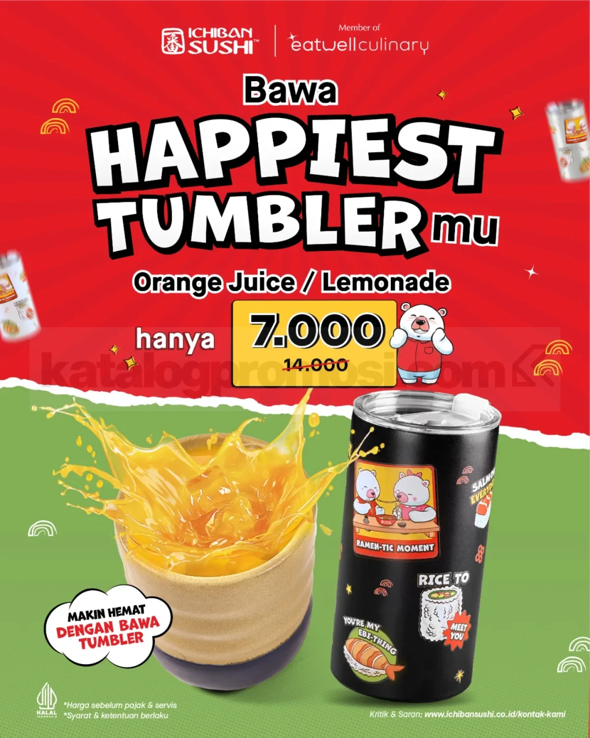 Mulai dari Rp46.000 kamu sudah dapat free orange yang segar untuk melengkapi santap siang atau malam kamu. Promo berlaku 11–24 Agustus 2025 di seluruh outlet Ichiban Sushi.