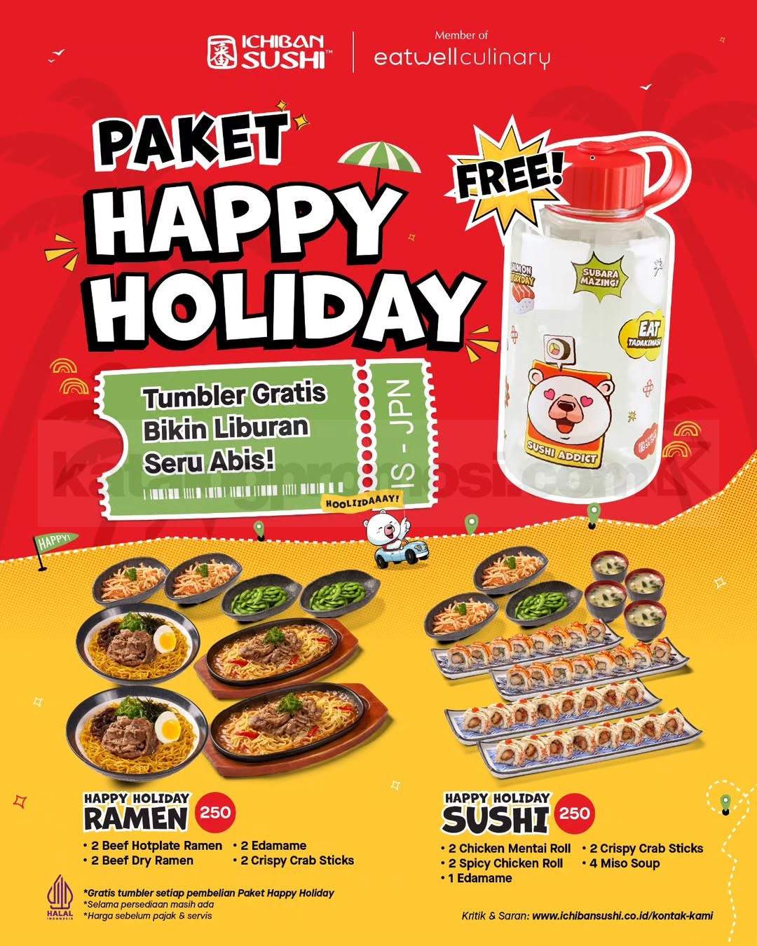 Yuk manfaatkan Promo Ichiban Sushi Paket Happy Holiday ini sekarang juga dan bawa pulang tumbler lucu buat nemenin aktivitas kamu setiap hari ✨