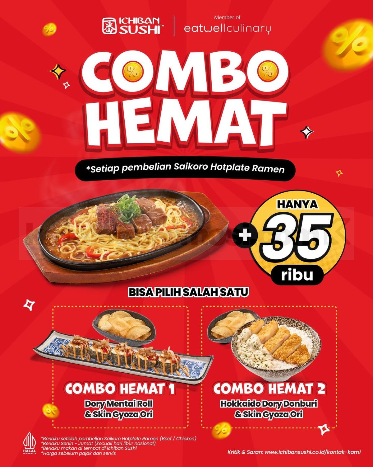 Promo Ichiban Sushi Combo Hemat hanya Rp35ribu, Berlaku setiap senin-jum’at tidak berlaku untuk hari libur nasional.