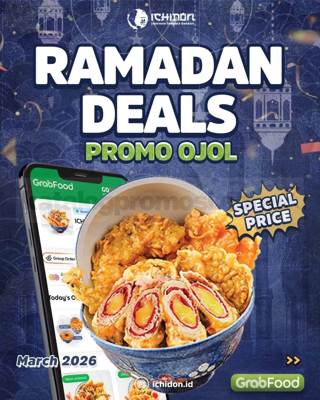 Harga tercantum per paket sesuai pilihan. Promo Ichidon GrabFood Ramadan Deals Mulai Rp. 89.000 ini masuk kategori promo ojol, jadi transaksi dan area layanan mengikuti sistem GrabFood.