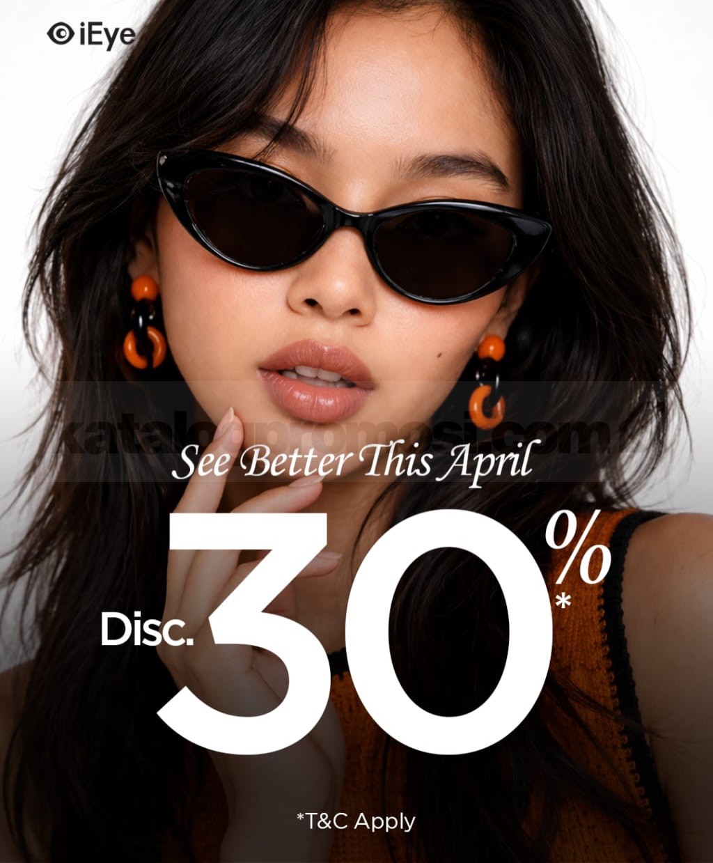 Promo iEye Diskon 30% kacamata favorit bantu penglihatan lebih nyaman dengan potongan menarik, berlaku mulai tanggal 6 April – 3 Mei 2026 di outlet tertentu
