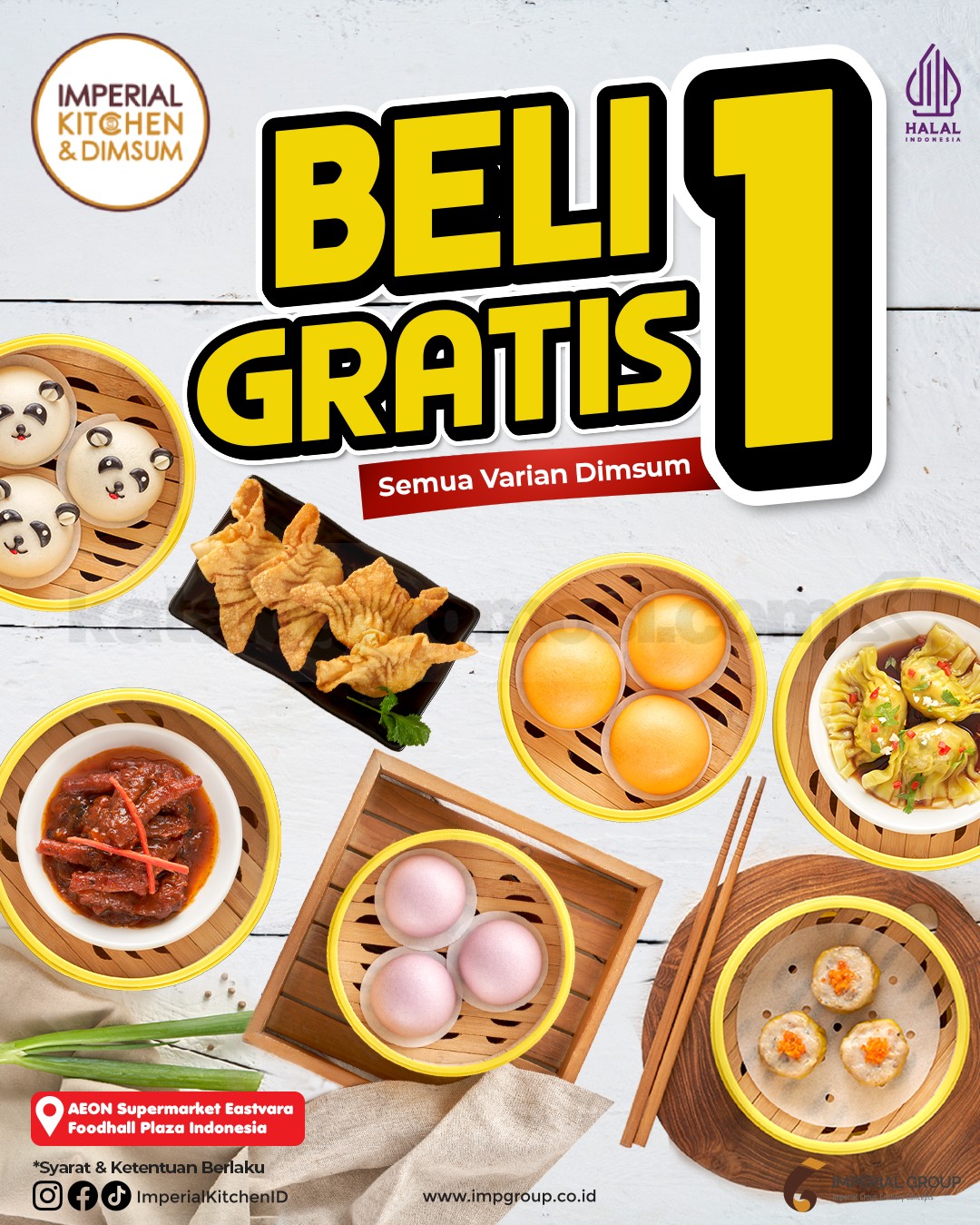 Promo ini berlaku di outlet Imperial Kitchen & Dimsum AEON Supermarket Eastvara dan Foodhall Plaza Indonesia, buat Dine-in dan Take Away juga. Cocok buat lunch bareng temen kantor, dinner santai sama pasangan, atau sekadar ngemil cantik bareng keluarga. 🎉