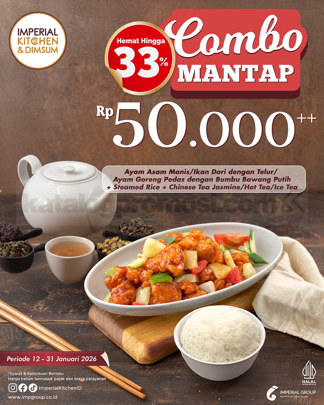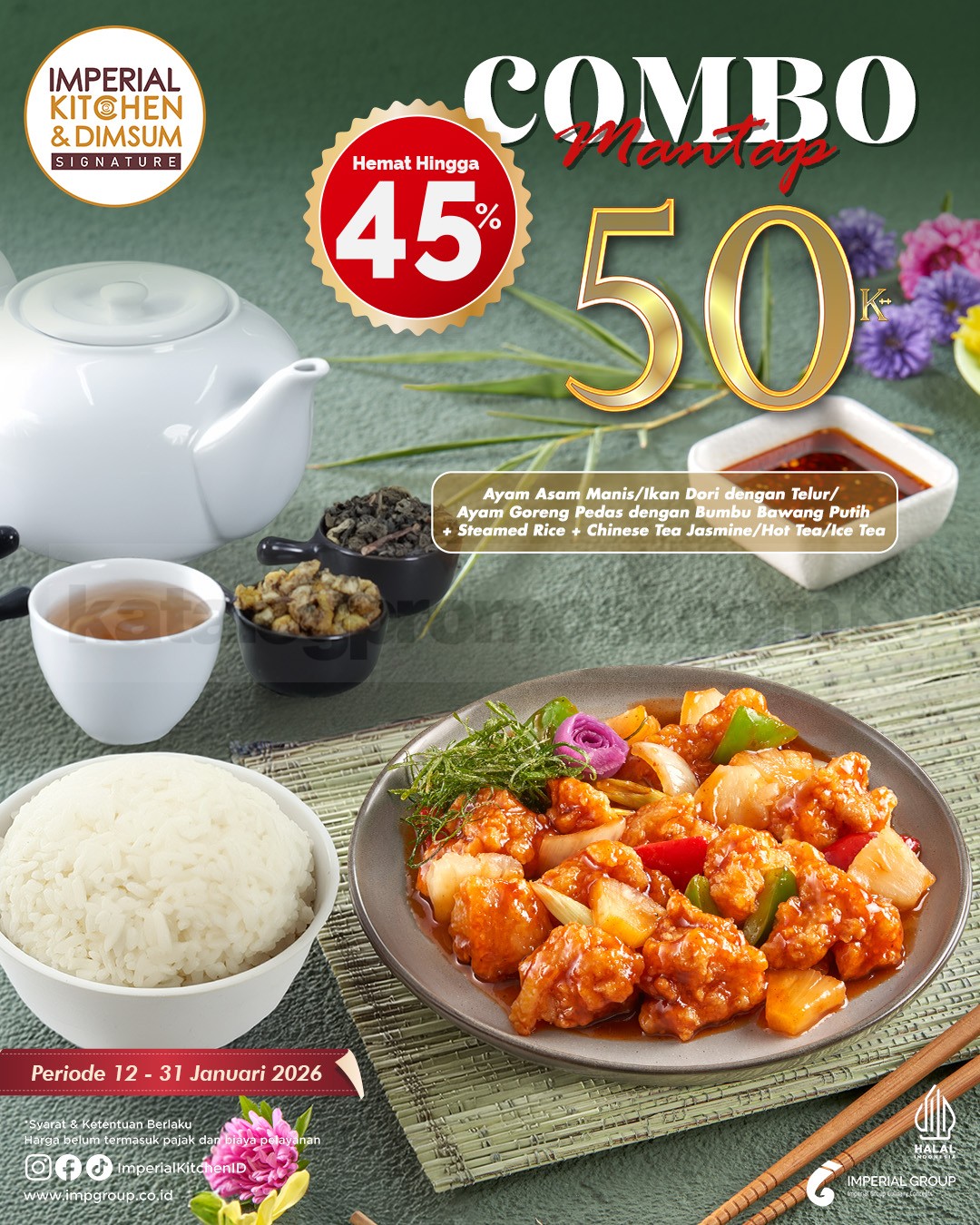 Promo Imperial Kitchen & Dimsum Combo Mantap Rp.50.000++ nikmati 1 dish + 1 nasi + 1 minuman, berlaku hingga 31 Januari 2026 di semua outlet.