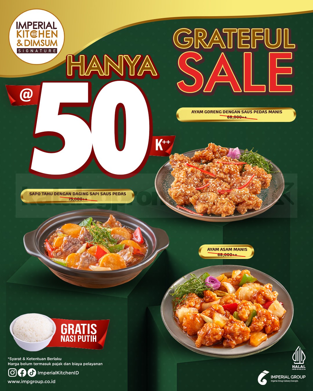 - Untuk Imperial Kitchen & Dimsum Signature harga spesial pilihan dishes + nasi putih Rp50.000++ (before tax & service)
