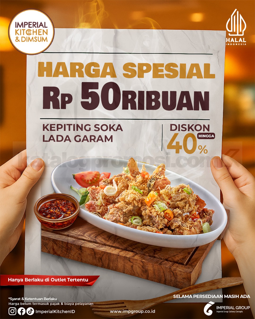 Promo Imperial Kitchen & Dimsum Harga Spesial Kepiting Soka Lada Garam cuma Rp50.000++. Berlaku setiap hari di 4 outlet terpilih!