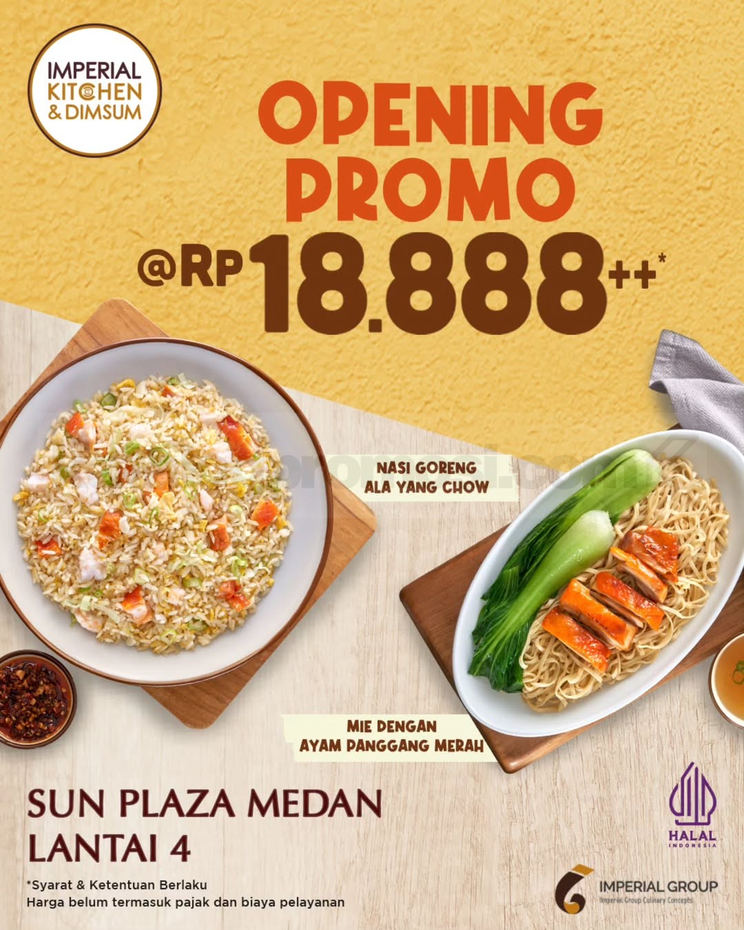 Promo Imperial Kitchen & Dimsum Opening Sun Plaza Menu mulai Rp. 18.888++ nikmati Nasi Goreng & Mie Ayam Panggang Merah berlaku 12β25 November 2025 di Medan