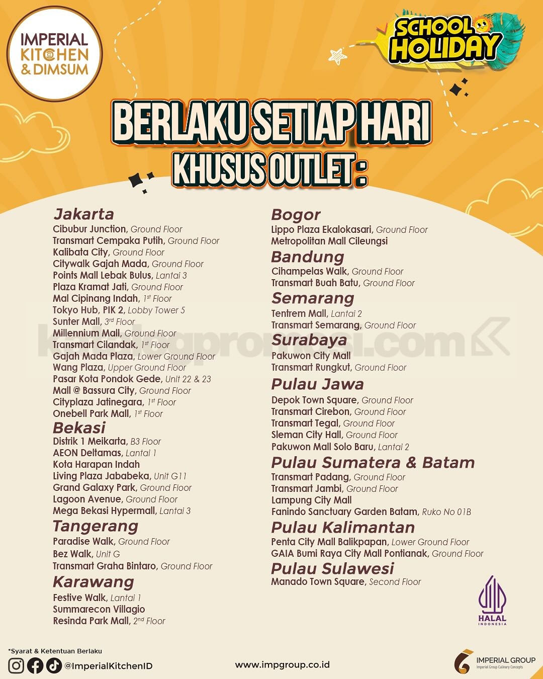 Promo berlaku di outlet Imperial Kitchen & Dimsum berikut ini: