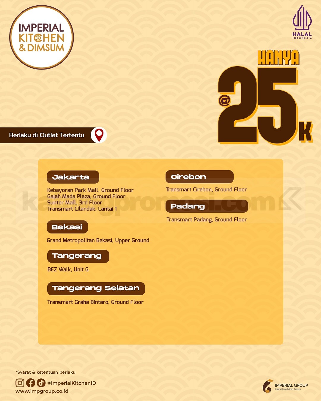 Promo berlaku di outlet Imperial Kitchen & Dimsum berikut ini: