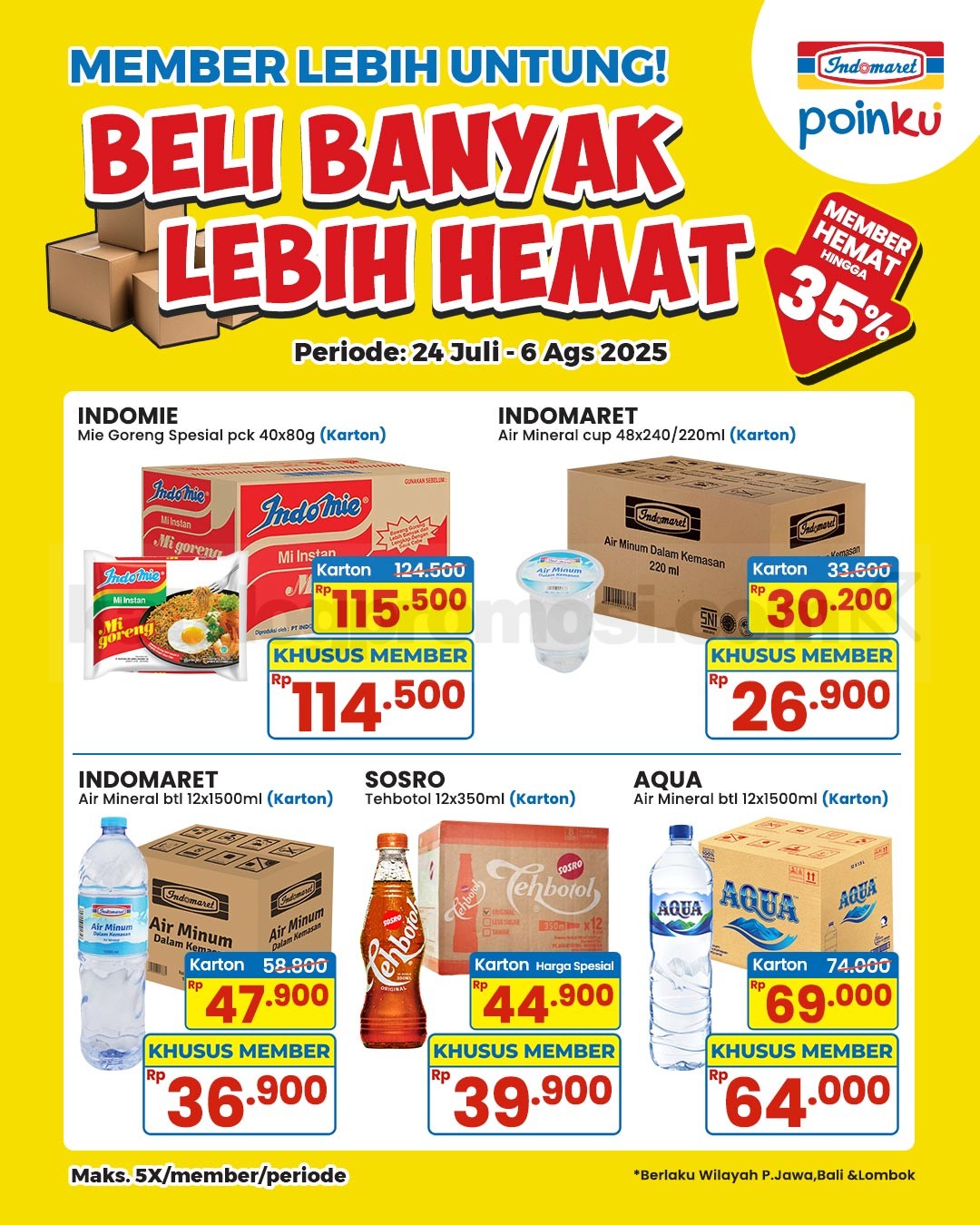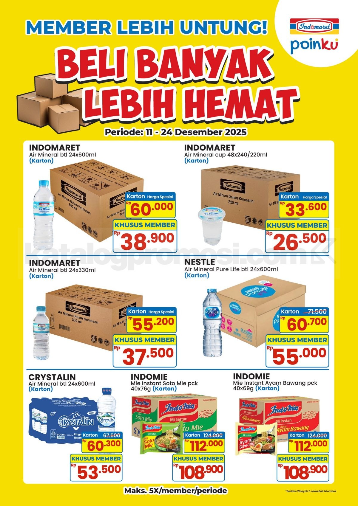 Promo Indomaret Beli Banyak Lebih Hemat Diskon hingga 35% berlaku 11-24 Desember 2025 khusus member! Belanja kartonan makin irit, cukup tunjukkan QR Poinku saat bayar.