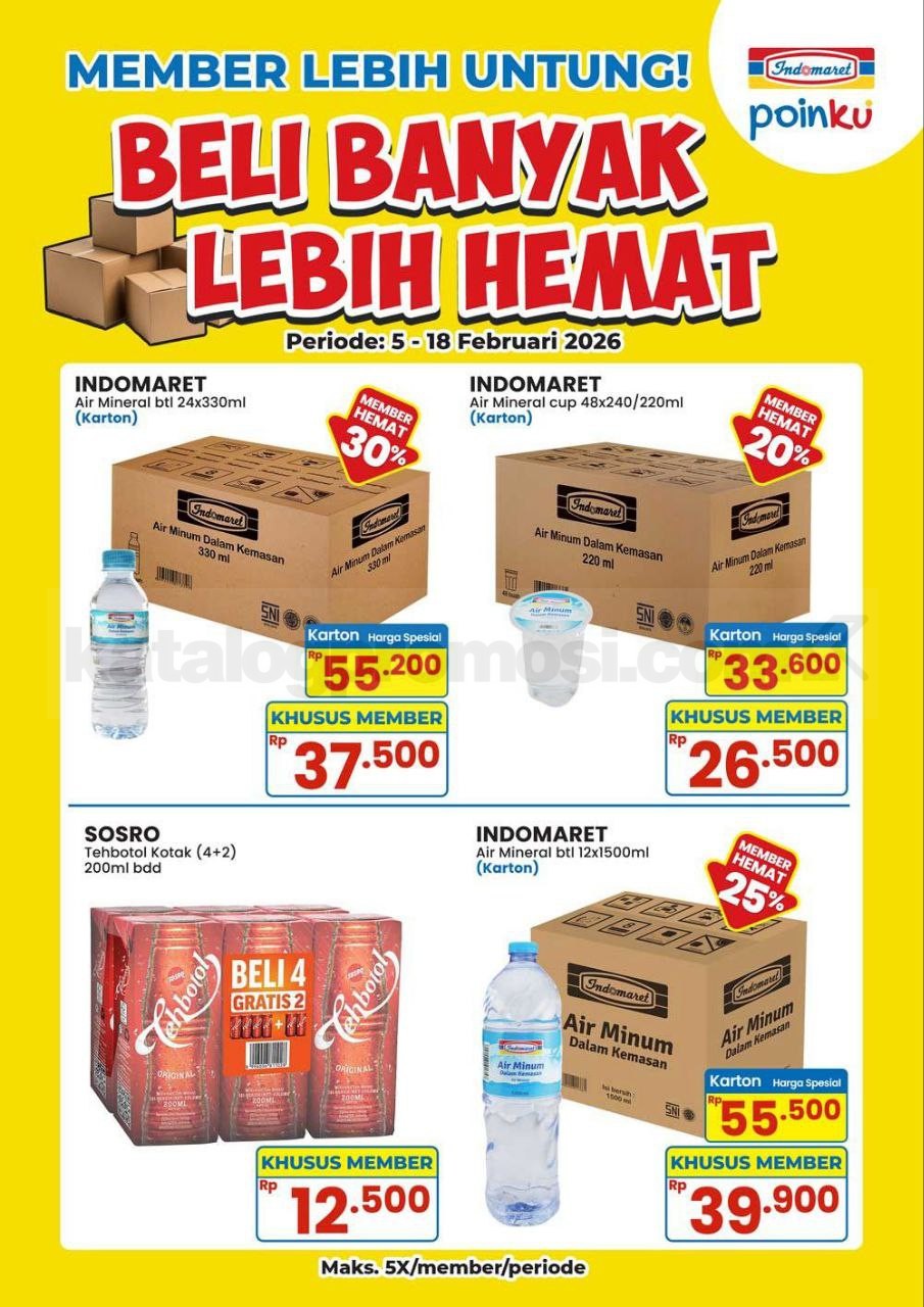 Promo Indomaret Beli Banyak Lebih Hemat Diskon Spesial Produk Pilihan berlaku 05-18 Februari 2026! Belanja kartonan makin irit, cukup tunjukkan QR Poinku saat bayar.